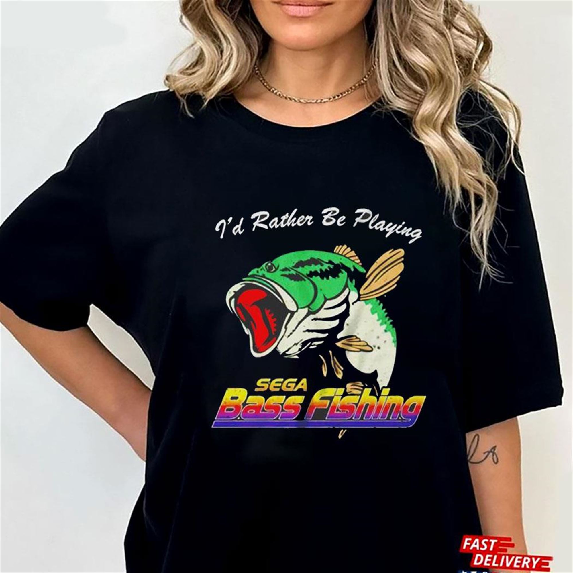 .Calling all Sega Bass Fishing enthusiasts! If you find yourself daydreaming about reeling in the big one and spending your days out on the virtual waters, then we have just the t-shirt for you. Introducing the “I’d Rather Be Playing Sega Bass Fishing” t-shirt, a must-have for any gaming and fishing enthusiast. This unique t-shirt allows you to proudly display your passion for both gaming and fishing, making it clear to everyone around that you would rather be casting lines in the virtual world of Sega Bass Fishing. So why wait? Show off your love for this classic game with our stylish and comfortable t-shirt, and let everyone know where your true priorities lie – on the water, reeling in those digital trophies. Get ready to make a splash with our “I’d Rather Be Playing Sega Bass Fishing” t-shirt!.