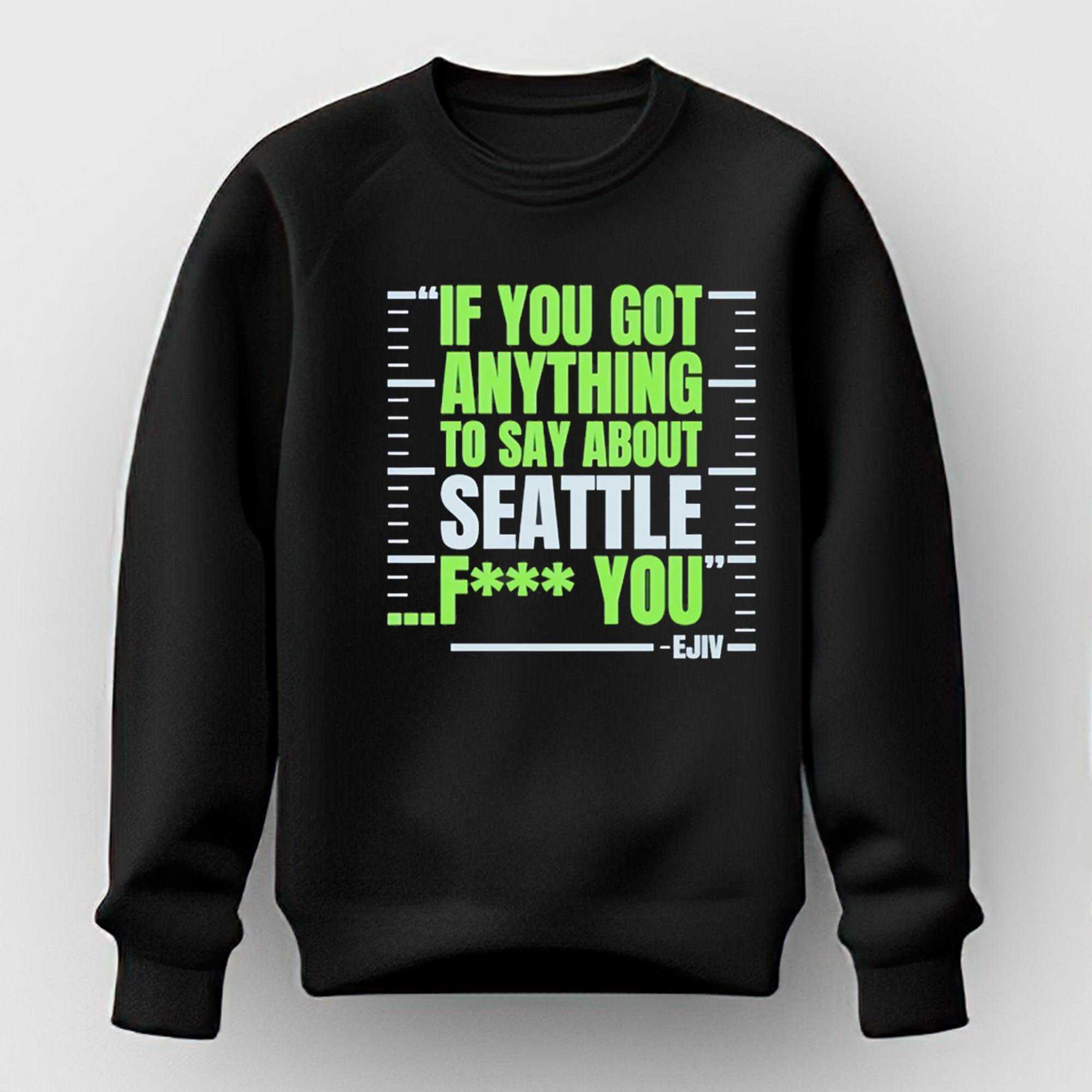 Show the rest of the league that Seattle’s spirit is unbreakable and that you’re not here for the critics. Honor the grit, the history, and the community that makes the Hawks legendary. Secure your spot in the fan base and purchase the If You Got Anything To Say About Seattle Seahawks Fuck You Ejiv Tee today to lead the roar!