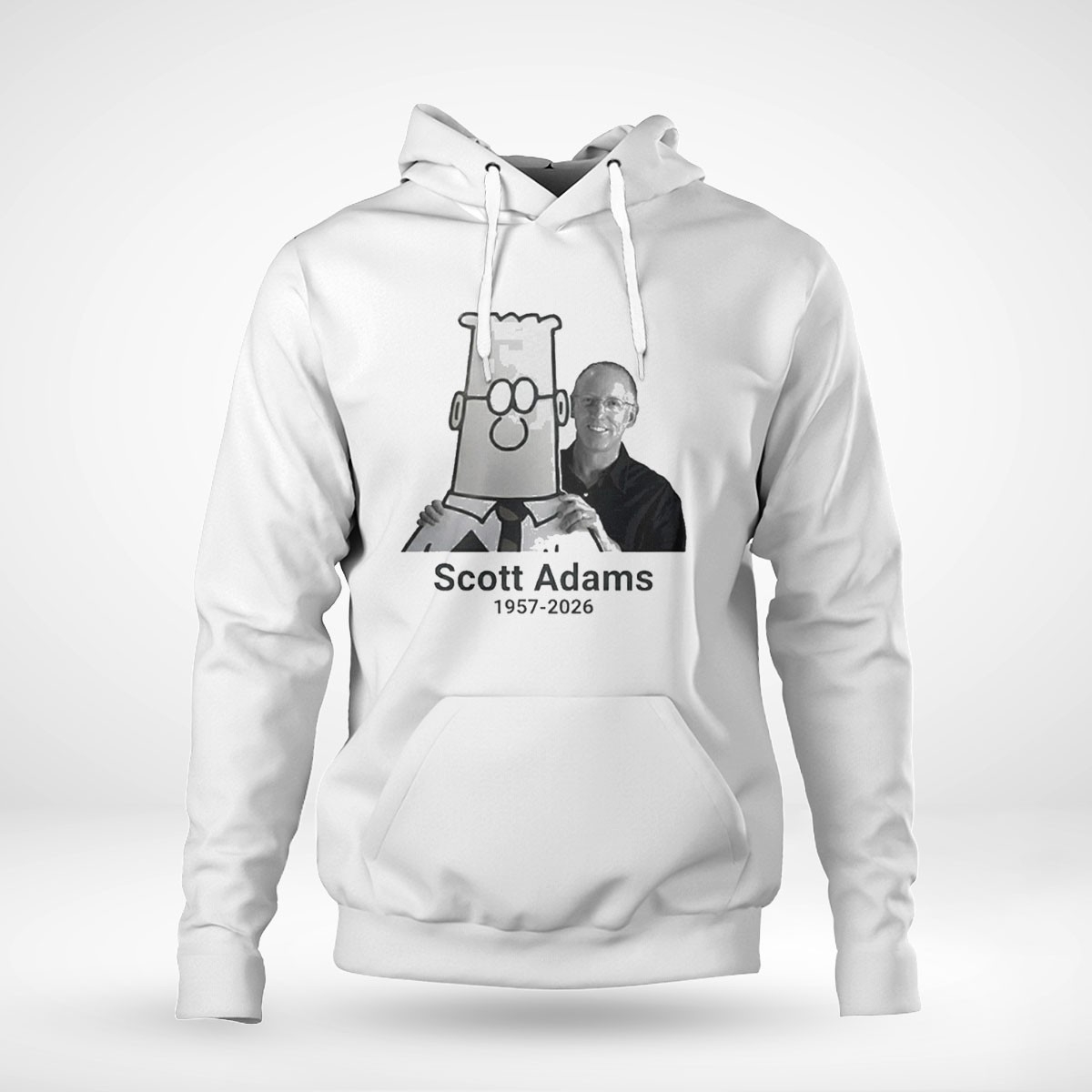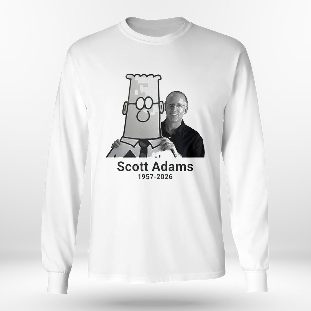 Pay your respects to the creator of Dilbert with this dignified memorial t-shirt. The design features a high-contrast, black-and-white portrait of Scott Adams alongside a stylized Dilbert graphic, symbolizing the inseparable link between the artist and his creation. The dates “1957-2026” are rendered in an elegant, modern font, providing a touch of class to this commemorative piece. Printed on a soft-touch white cotton base, the minimalist layout ensures the message of remembrance remains the focus. This shirt is an ideal choice for longtime readers and those who appreciated the sharp wit and social commentary of his work. It serves as a wearable tribute to a decades-long career that redefined office-culture humor. The high-quality print is soft to the touch and durable, maintaining the clarity of the image through years of wear. Honor the legacy of a legendary cartoonist—buy your In Memory Of Scott Adams 1957-2026 Tee now!.