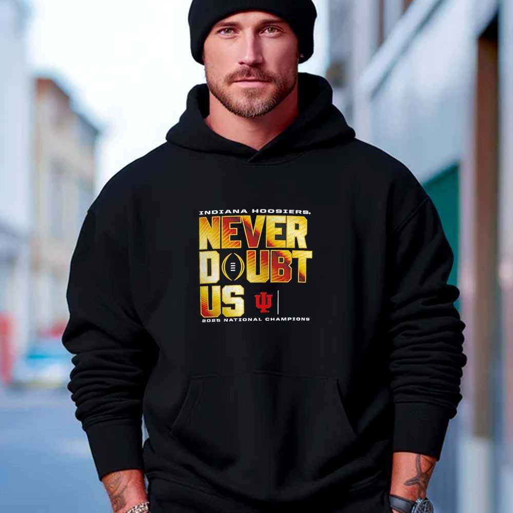 Proclaim your unwavering faith in the team with the “Never Doubt Us” 2025 National Champions tee. This design is a tribute to the resilience of the Indiana squad and the loyalty of the fan base that never stopped believing. Featuring a bold and aggressive “NEVER DOUBT US” headline integrated with the 2025 championship motifs, this shirt makes a clear and powerful statement. The classic cream and crimson colors are rendered in high-definition on a professional dark background, creating a high-contrast look that is as tough as the team’s defense. Crafted from an ultra-soft ringspun cotton, it provides all-day comfort for rallies and watch parties. Show the world that victory belongs to those who persevere. This is the definitive gear for the fan who stood by the team through every challenge and saw the dream come true. Wear the heart of a champion—order your Indiana Hoosiers Never Doubt Us 2025 National Champions Tee now!.