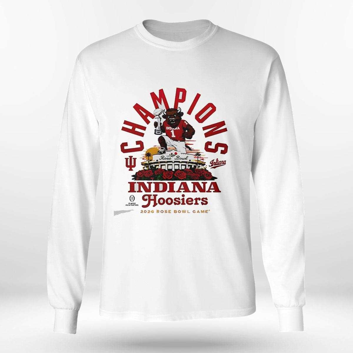 Mark the pinnacle of the 2026 season with this ultimate victory souvenir for the Indiana faithful. This “Rose Bowl Game Champions” tee is a sophisticated tribute to a dream season, featuring a vibrant, multi-layered graphic that includes the prestigious Rose Bowl logo, a celebratory championship banner, and the iconic Indiana “IU” trident. The use of deep crimson, lush greens, and golden accents creates a prestigious look that honors the “Granddaddy of Them All.” The layout is professional and balanced, ensuring that the championship message is clear from a distance. Made from a premium, moisture-wicking cotton-poly blend, this shirt provides exceptional comfort whether you’re celebrating in Pasadena or back in Bloomington. The double-stitched collar and reinforced shoulders guarantee that this memento will survive every victory parade and reunion for years to come. It captures the essence of a historic post-season run, serving as a wearable trophy for every member of the Hoosier Nation. This is a limited-edition piece designed for those who believe that victory is sweet and deserves to be displayed in style. Celebrate the glory of the roses and wear your champion status—order your Indiana Hoosiers Rose Bowl Game Champions 2026 Tee today!. T-shirt !
