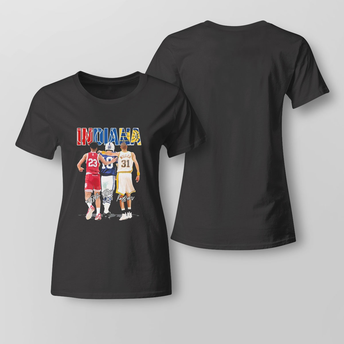 Indiana Trayce Jackson Davis Donte Moncrief And Reggie Miller Signatures Shirt is a stylish, comfy shirt. Made of 100% cotton, it is cool and soft and keeps you cool in summer days. This edgy shirt comes in different colors, but the black stands out the most and matches with everything. It has many uses like casual wear, party wear, office wear and much more. Product details: