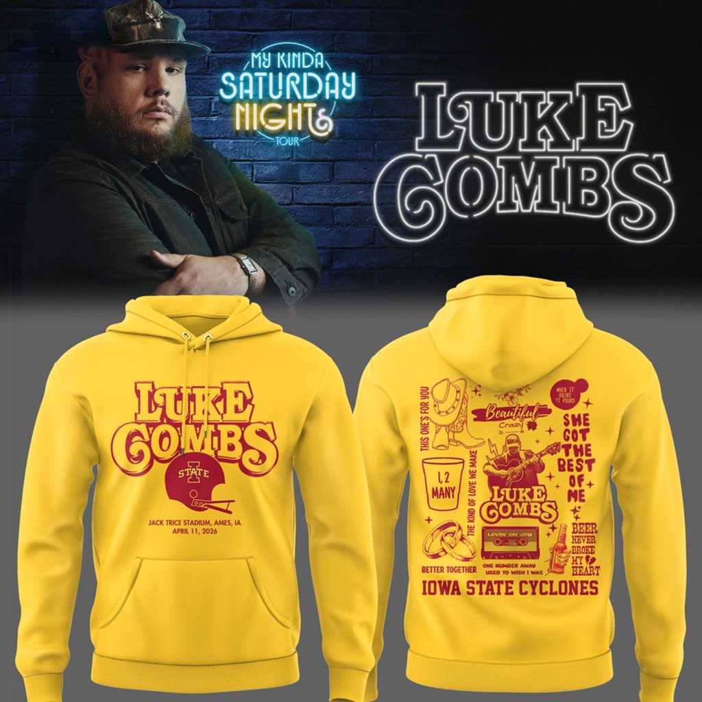 Wear your pride for the legacy and show the rest of the league that Iowa State is united and stronger than ever. Honor the hustle and lead the roar for the win in a look that has true soul. Don’t let this rare tribute pass you by—grab it while you can. Secure your piece of music and sports history. Order the Iowa State Cyclones Luke Combs My Kinda Saturday Night Tour live in Jack Trice Stadium Hoodie today!