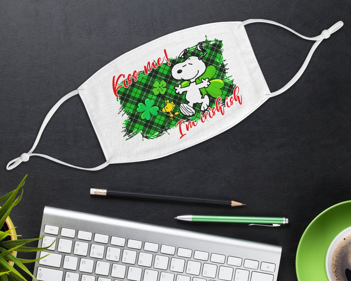 Irish Snoopy Kiss Me I’m Irish-ish Face Mask, Anti-Pollution, Reusable, Washable, Waterproof Mask Cover