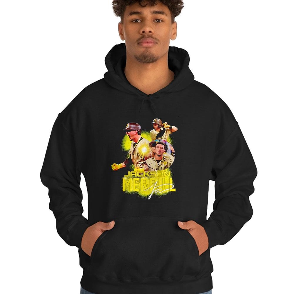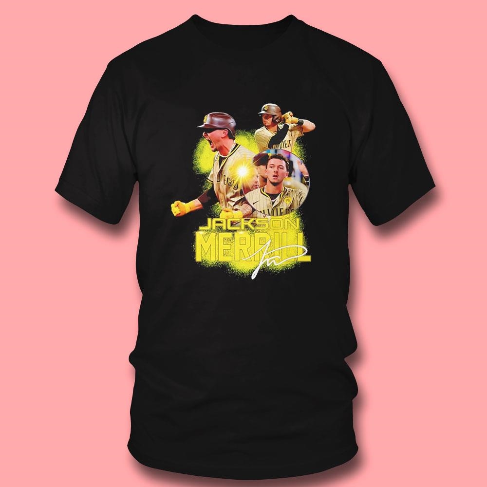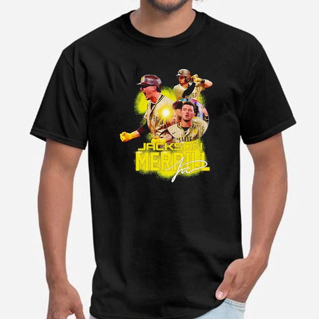 .The Jackson Merrill San Diego Padres Signature Shirt is a must-have for any true Padres fan. This officially licensed merchandise features the iconic autograph of rising star Jackson Merrill, one of the team’s most promising young players.