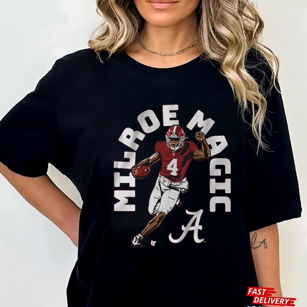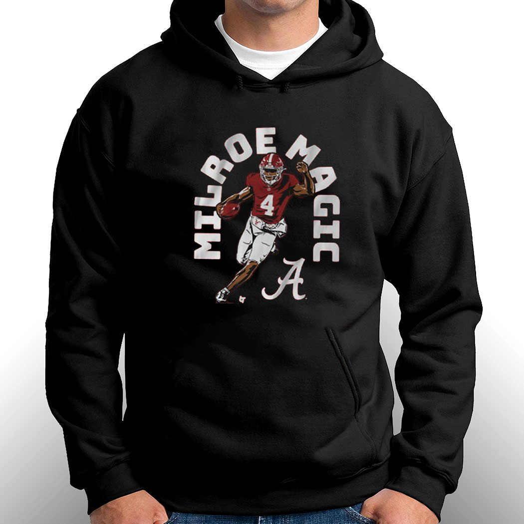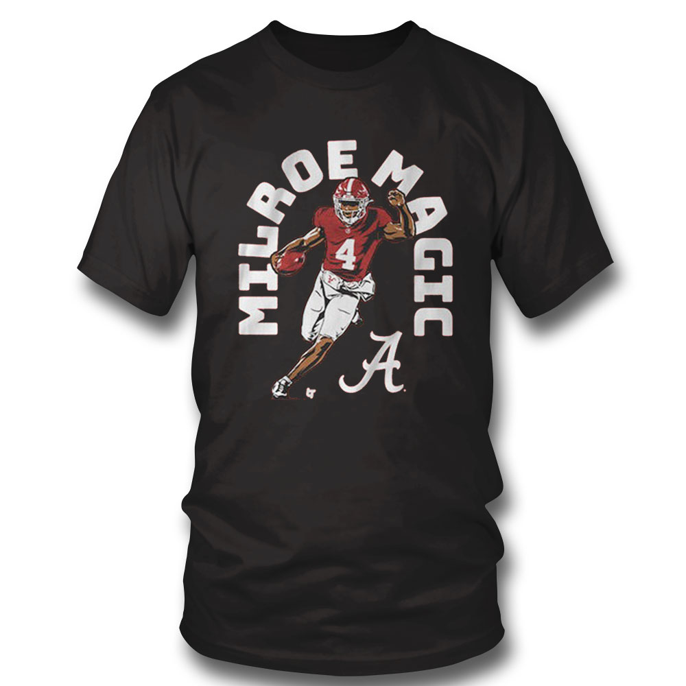 This JALEN MILROE MAGIC ALABAMA FOOTBALL Shirt is the perfect way to show your support for your favorite team! It features a bold design with the team logo and colors, making it a great addition to any fan’s wardrobe. Get yours today and show your team spirit!.