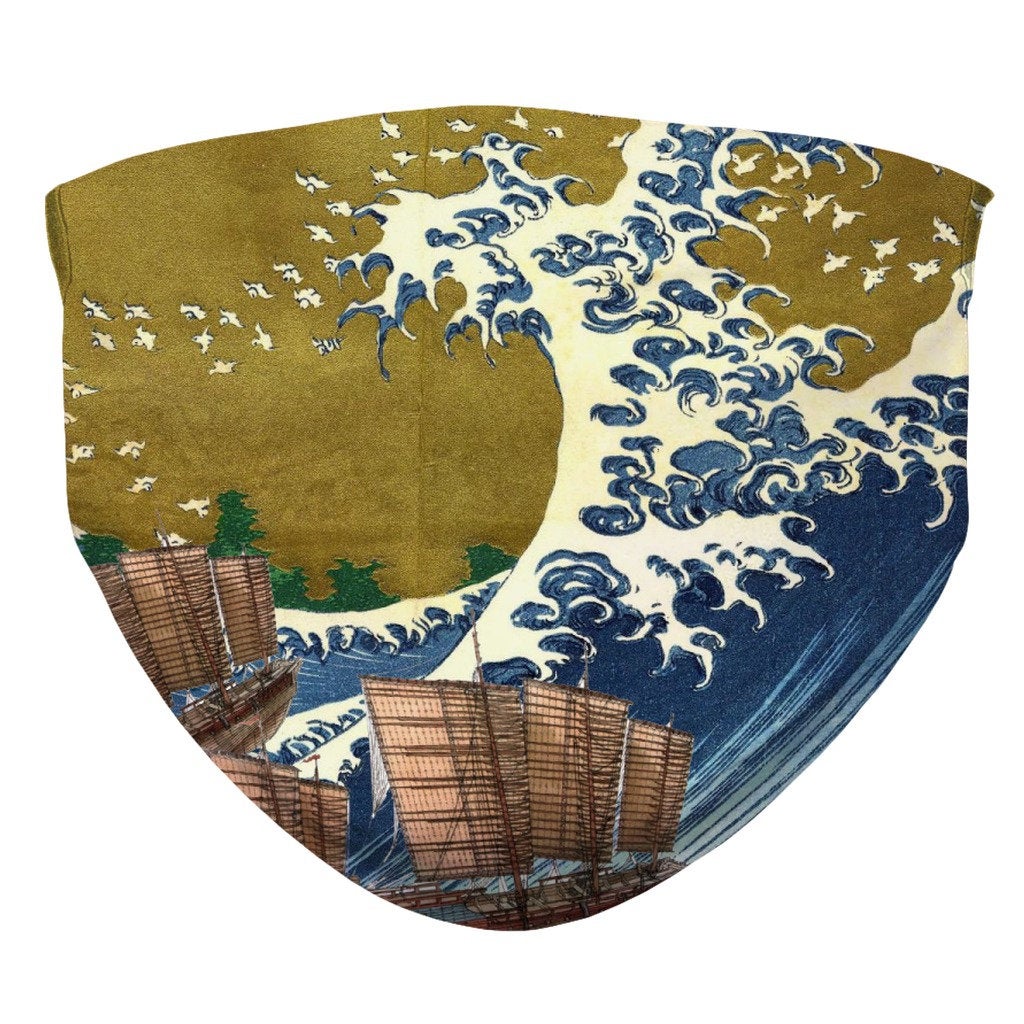 Japanese Wood Print Divine Wind off Kanagawa Victory Face Mask