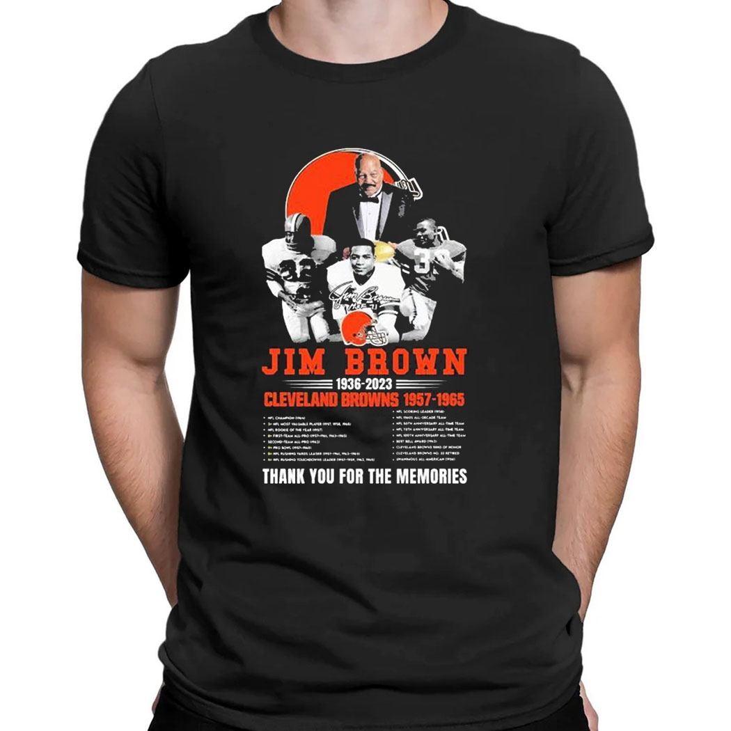 Jim Brown 1936 2023 Cleveland Browns 1957 1965 Thank You For The Memories Signatures T-Shirt