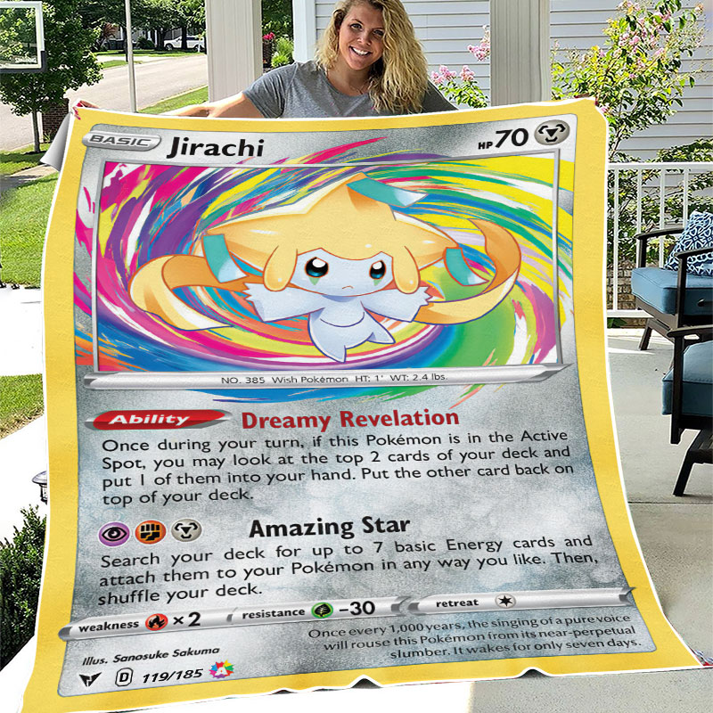Jirachi 119-185 Vivid Voltage Amazing Rare Pokemon Card Fleece Blanket
