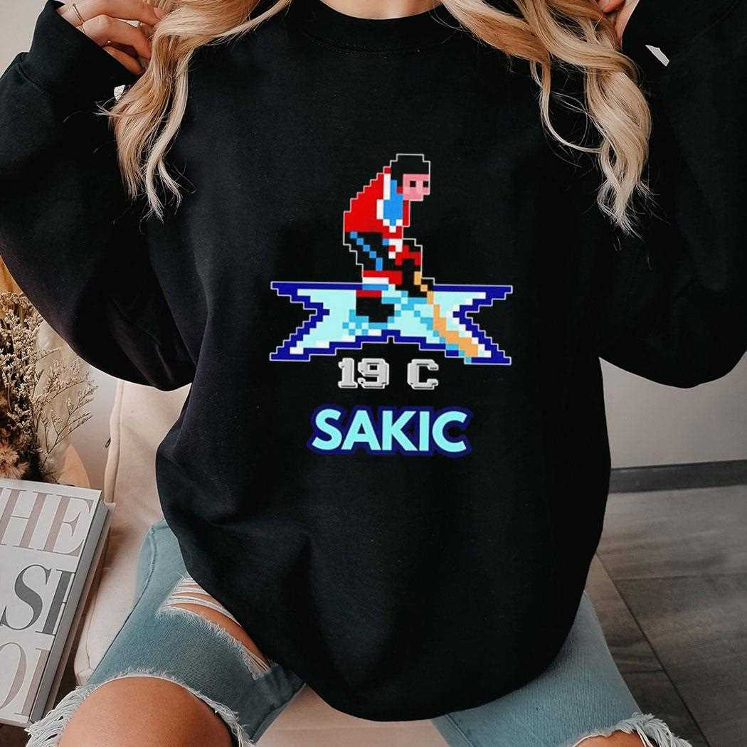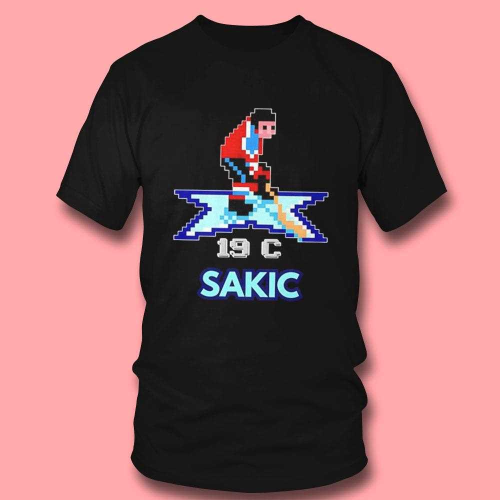 Level up your fan gear with this creative crossover that blends hockey legend Joe Sakic with the nostalgia of 8-bit video games. The design features a pixelated version of “Super Joe” in his classic number 19 Avalanche jersey, complete with a “Power Bar” and “Life Hearts” at the top of the graphic. It looks like a screenshot from a beloved 90s arcade game, capturing the era when Sakic led Colorado to multiple Stanley Cup victories. The use of vibrant burgundy, blue, and silver pixels creates a retro-cool aesthetic that is both unique and incredibly stylish. The name “SAKIC” is displayed in a classic gaming font, making it a must-have for both sports fans and retro gamers. The high-quality print captures every “pixel” with precision, ensuring the design looks sharp and intentional. This shirt is a fun, lighthearted way to honor one of the greatest captains in NHL history. Its soft, lightweight fabric makes it the perfect choice for long gaming sessions or cheering from the stands. Don’t hit the “Game Over” screen on your style—grab the Joe Sakic Of The Colorado Avalanche Video Games Tee now!. T-shirt !
