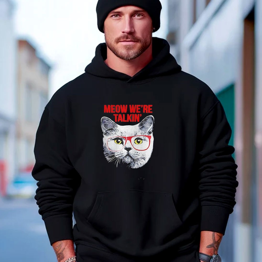 Celebrate a niche pop-culture moment with a touch of feline flair. This design features a quirky, artistic portrait of a cat sporting stylish sunglasses and a “Meow, We’re Talkin'” slogan, a witty reference that fans of the actor Joey Bragg will instantly appreciate. The artwork utilizes a vibrant, high-saturation print that brings the character’s sassy personality to life. Set against a premium black fabric, the reds and whites of the graphic pop with cinematic energy. This tee is crafted for those who love unique, celebrity-inspired fan art that doesn’t take itself too seriously. The fabric is 100% combed cotton, providing an exceptionally smooth feel and a tailored fit. It’s a fun, lighthearted piece for casual meetups, movie nights, or just lounging around with your own feline friend. Stand out from the mainstream with a design that is as playful as it is specific. Join the conversation with a wink and a purr—grab your Joey Bragg Cat Meow Were Talkin Tee today!.