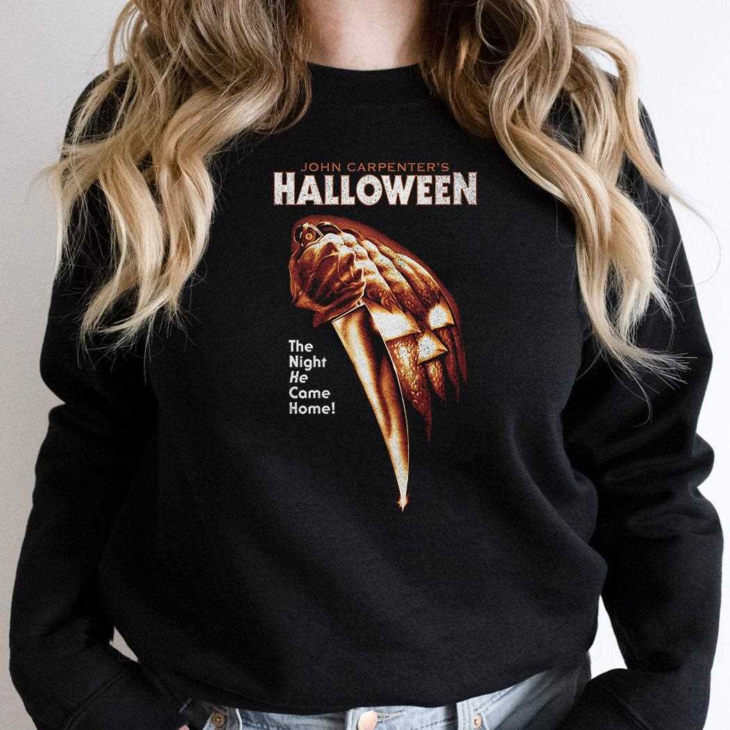 Relive the inaugural night of terror with “John Carpenter’s Halloween The Night He Came Home T-Shirt.” This essential design features iconic imagery that captures the chilling premise of the original 1978 film. The graphic evokes the terrifying atmosphere of Michael Myers’ escape and his relentless return to Haddonfield. From the ominous silhouette to the classic title treatment, every detail is a homage to the film that started it all. Printed on a soft, high-quality tee, it’s perfect for fans who want to honor the roots of the slasher genre. This shirt is a staple for any horror collector, a timeless piece that recalls the purest form of cinematic fear. The ultimate horror story. Commemorate the beginning of a legendary saga. Get your John Carpenter’s Halloween The Night He Came Home T-Shirt and wear the original fright!. T-shirt !