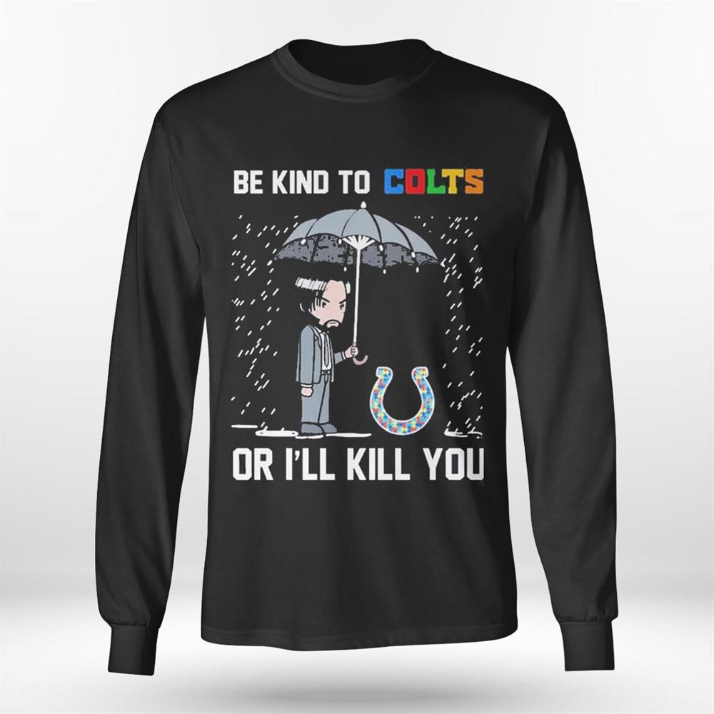 If you’re searching for a John Wick Be Kind Autism Indianapolis Colts Or Ill Kill You T-shirt that can offer both a soft feel and breathability to keep you comfortable on sweltering summer days, look no further. . Our 100% cotton T-shirt is the answer to your wardrobe woes. Made from soft, breathable cotton, it will keep you comfortable and chic throughout the season. Not only is it easy to wear, but it’s also easy to care for – simply toss it in the washing machine and dry it on low heat, and it will look brand new. It’s also an excellent option for those with sensitive skin, thanks to its natural hypoallergenic properties. You don’t have to take our word for it – give it a try and see for yourself! Purchase your cotton T-shirt today and add a touch of comfort and style to your casual or dressed-up looks. Don’t wait any longer, add it to your cart and experience the benefits of our 100% cotton T-shirt !