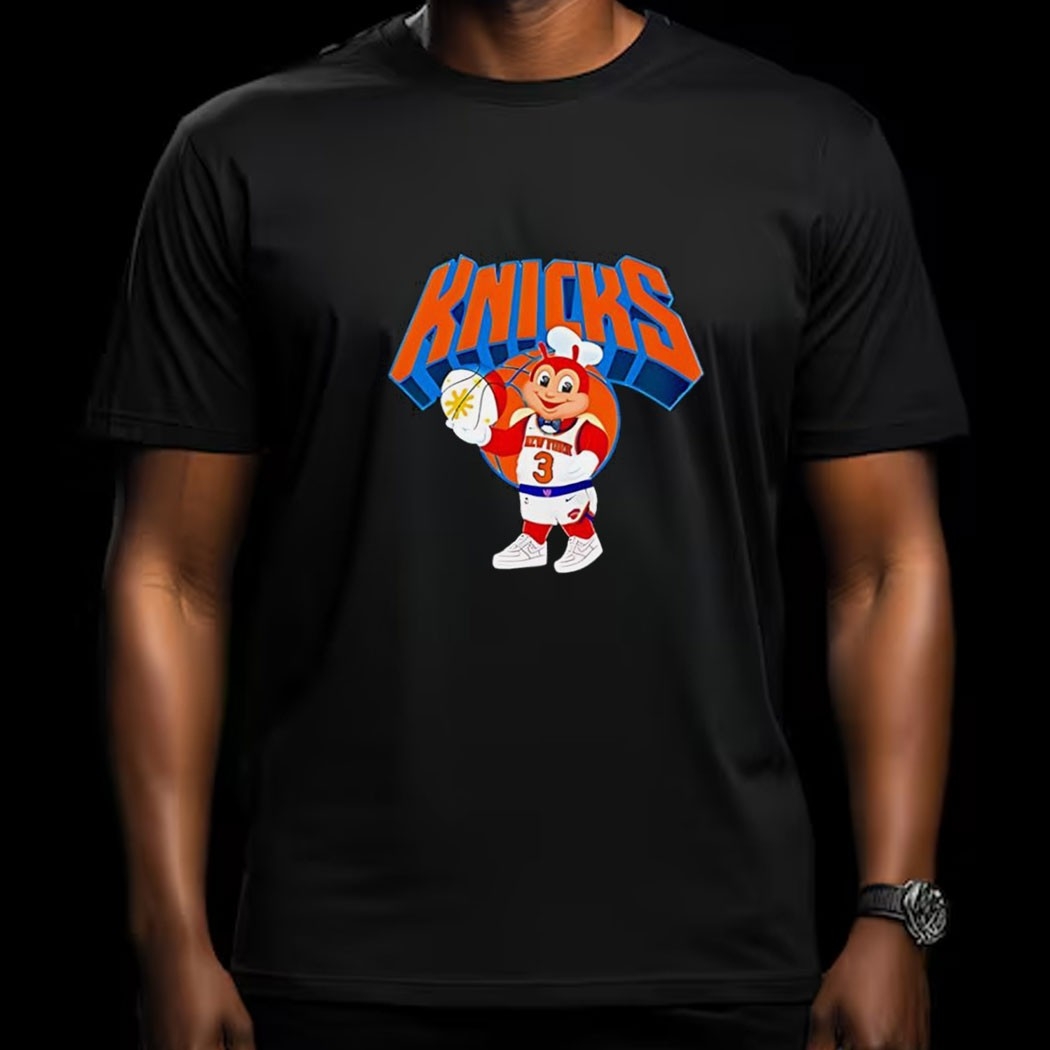 Witness the ultimate cultural mashup with this high-energy crossover tee. Featuring the world-famous Filipino mascot Jollibee decked out in New York Knicks gear and ready to hit the court, this design is a celebratory fusion of global fast-food icons and legendary NBA basketball. The vibrant red, orange, and blue color palette captures the heart of both brands, creating a visual that is as fun as a game-winning bucket. Printed on a soft-wash cotton shirt, it offers a relaxed fit that’s perfect for the high-intensity atmosphere of Madison Square Garden or a casual lunch at your favorite chicken spot. The graphics are rendered in a modern, illustrative style that appeals to fans of all ages. This is a rare, unique piece of gear that allows you to represent your heritage and your team pride in one striking garment. Combine your cravings for victory and great food—buy the Jollibee New York Knicks Basketball Tee now and rep the blue and orange!.