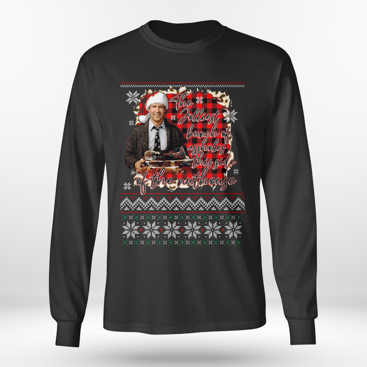 The Jolliest Bunch Of Assholes National Lampoon’s Christmas Vacation Ugly Christmas Sweater Sweatshirt is a stylish, comfy shirt. Made of 100% cotton, it is cool and soft and keeps you cool in summer days. This edgy shirt comes in different colors, but the black stands out the most and matches with everything. It has many uses like casual wear, party wear, office wear and much more.