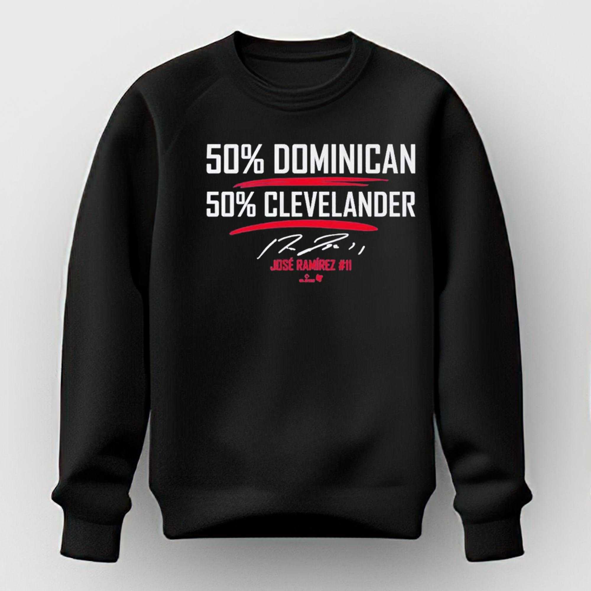Celebrate a historic achievement in the world of professional baseball with the Jose Ramirez 50-50 Tee. This design is a high-octane tribute to the Cleveland superstar’s incredible feat of power and speed, joining the elite 50-50 club. The graphic features a patriotic and energetic layout, combining the flags of the Dominican Republic and Cleveland pride into a single, cohesive masterpiece. Bold red, white, and blue tones dominate the print, centered around Ramirez’s iconic action silhouette and his official signature. It captures the grit, the talent, and the unwavering loyalty of a player who has become the heartbeat of the franchise. This isn’t just fan apparel; it’s a wearable record book for a generational talent. The shirt is constructed from a premium performance-grade cotton blend, providing exceptional breathability and comfort for game-day watch parties or casual outings around the city. The high-fidelity screen print ensures every detail of the statistics and the branding remains sharp through every extra inning and celebratory parade. It represents the hard work and the “always hustling” mentality that defines J-Ram’s career. Show your allegiance to the best third baseman in the game and represent the “Land” with unparalleled flair. Whether you’re at the stadium or repping from home, this piece ensures you look like a winner. Don’t throw away your shot at this limited-run commemorative drop. Support the goat and buy the Jose Ramirez 50-50 Tee now!. T-shirt !