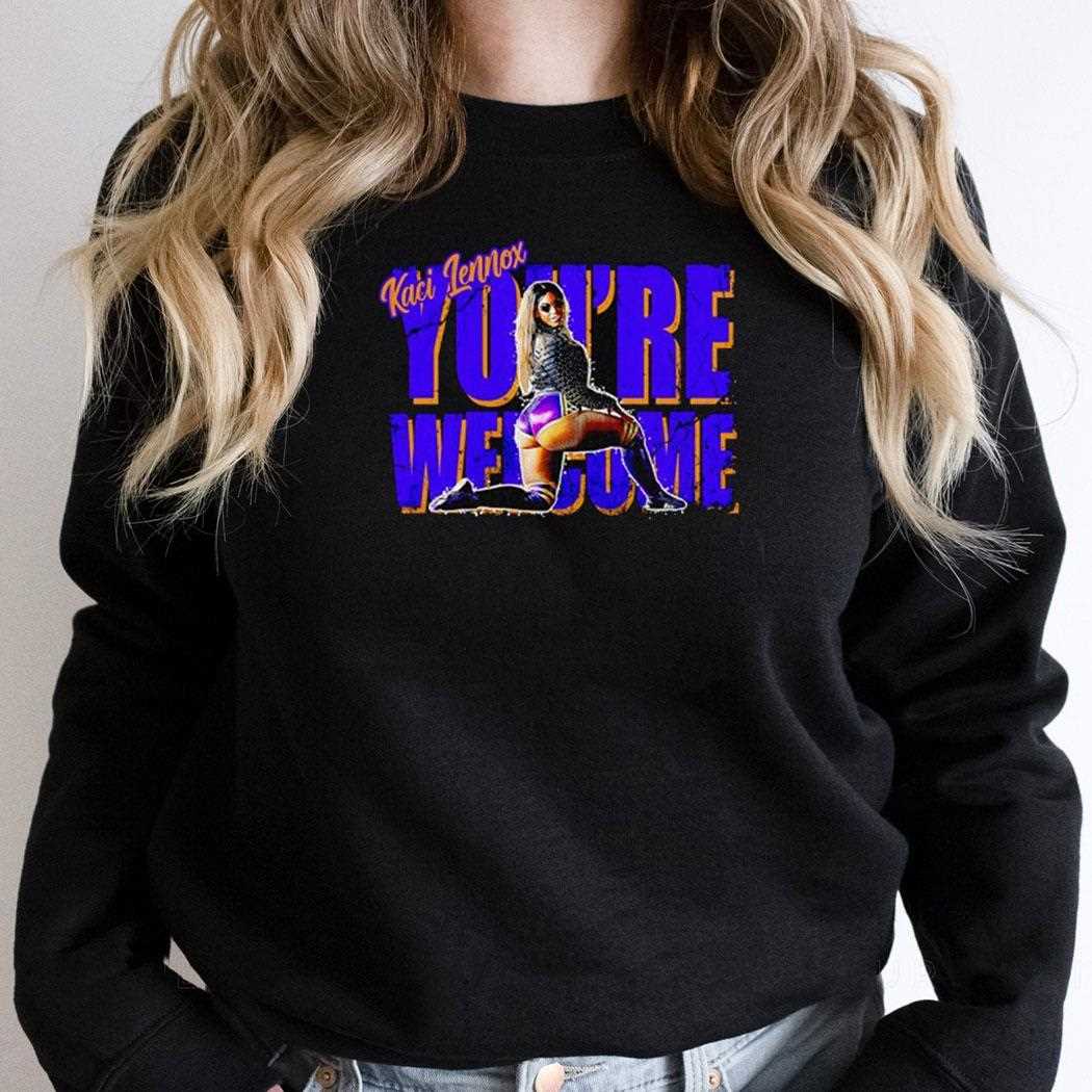 Don’t miss out on the chance to express your personality and uplift those around you. Grab your Kaci Lennox “You’re Welcome Ladies” shirt today and wear it as a badge of honor that says you are proud to be part of an empowered community!.
