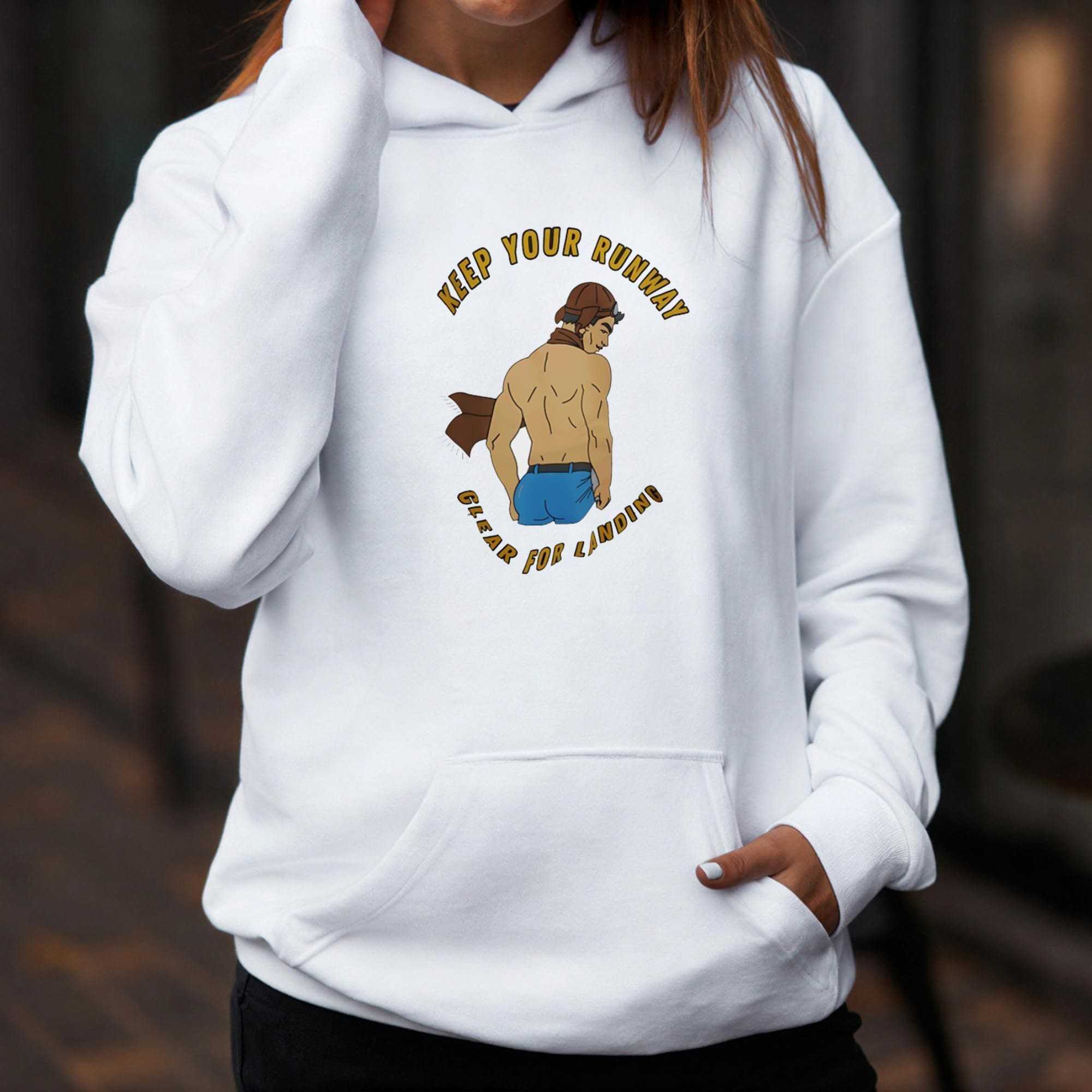Showcase your playful side with this standout design, available across a versatile range of apparel. Whether you prefer the classic comfort of a T-shirt, the cozy warmth of a Hoodie or Sweatshirt, the relaxed feel of a Long Sleeve, the breezy style of a Tank Top, or the elegant cut of a V-Neck, there’s an option perfect for you. Each piece proudly features the distinctive artwork, ensuring the humor of the **Keep Your Runway Clear For Landing Tee** resonates, no matter your preferred style. Don’t just wear a shirt; make a statement that’s both fun and fashion-forward. Add to Cart now and prepare for takeoff!