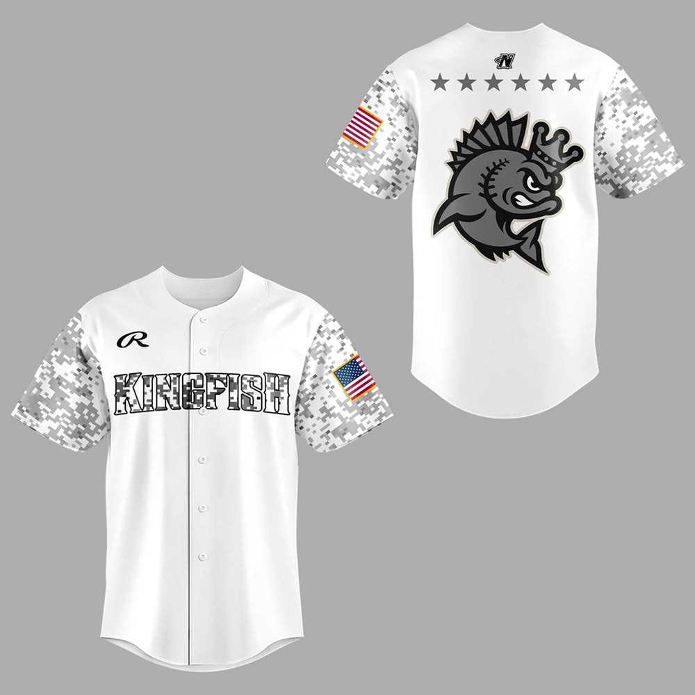 - Introducing the Kenosha Kingfish Military 2025 Baseball Jersey , the perfect addition to any fan’s collection! .The Kenosha Kingfish Military 2025 Baseball Jersey is not just a piece of clothing; it’s a statement of pride and support for our armed forces. As we approach the 2025 season, this jersey stands out as a tribute to those who serve our country. Crafted with high-quality materials, it combines comfort and durability, making it perfect for game day or casual wear.