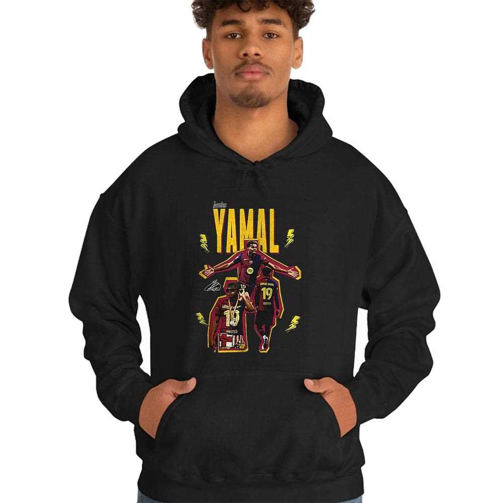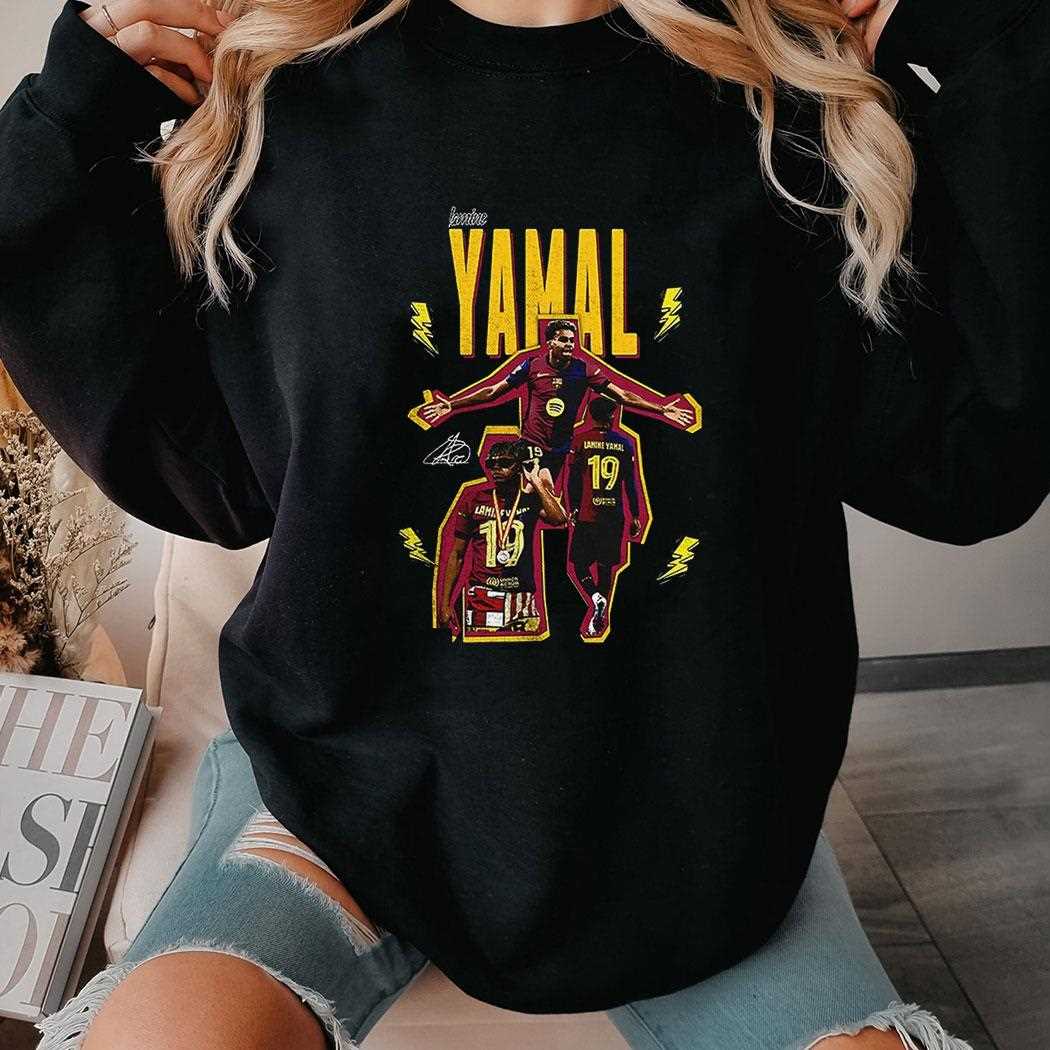Wearing this shirt isn’t just about fashion; it’s about being part of a community that celebrates talent, dedication, and the spirit of the game. Whether you’re at the stadium cheering him on or enjoying a casual day out with friends, this shirt is an essential addition to your wardrobe. Don’t miss your chance to be part of something special—grab your Lamine Yamal Celebration Shirt today and show your support for a future football legend!.