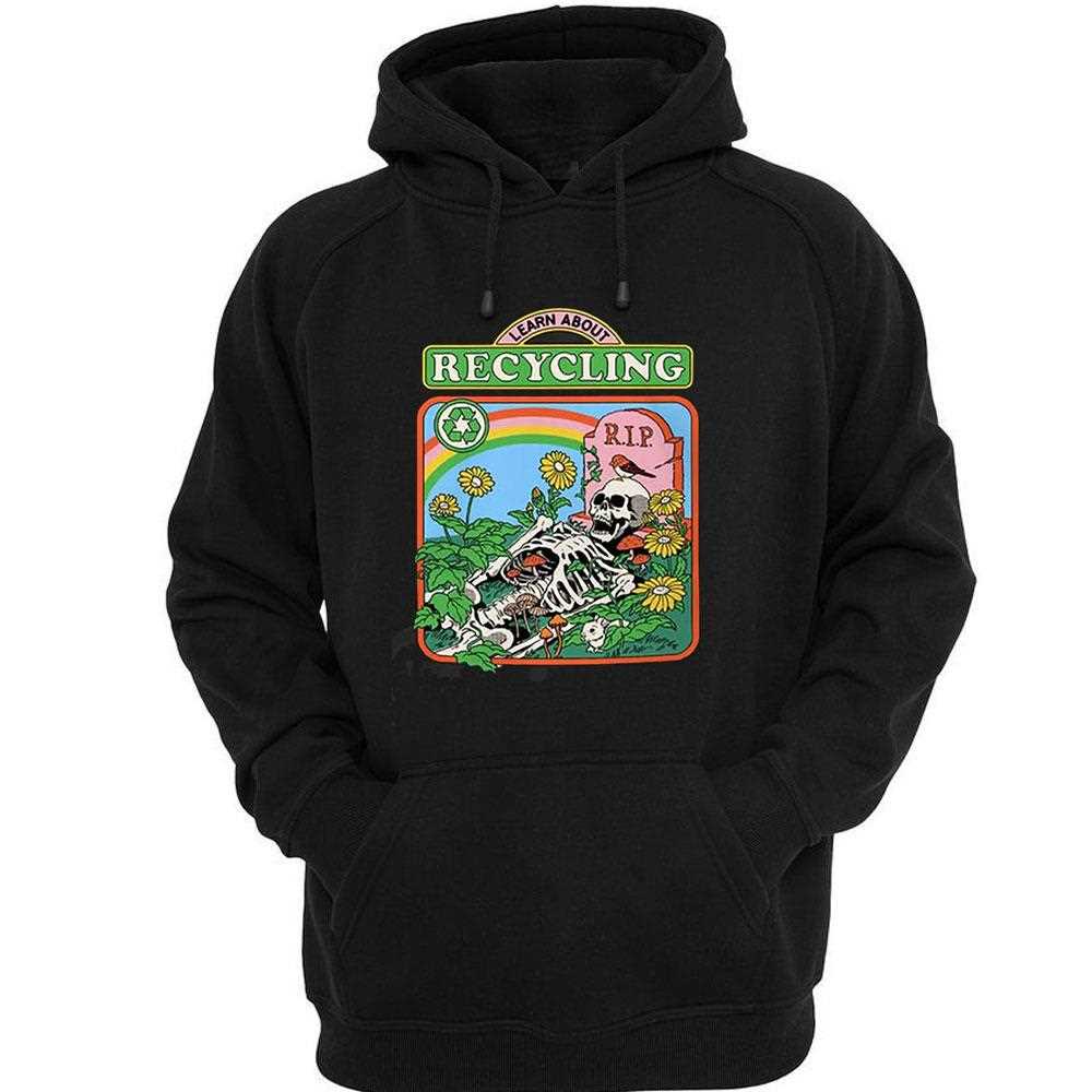 Get eco-conscious with a twist! Our “Learn About Recycling: R.I.P.” shirt offers a darkly humorous take on environmental awareness. Featuring a skeleton happily engaging in recycling, this design is a quirky reminder of our responsibility to the planet. It’s a conversation starter that blends important messages with a unique, slightly macabre aesthetic.