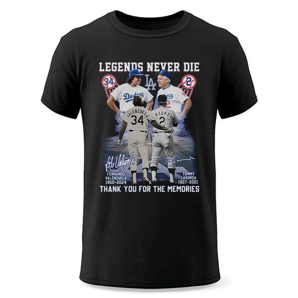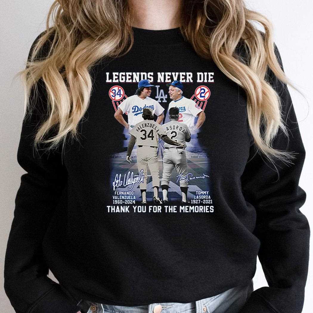 Legends Never Die Valenzuela Lasorda Thank You For The Memories Shirt