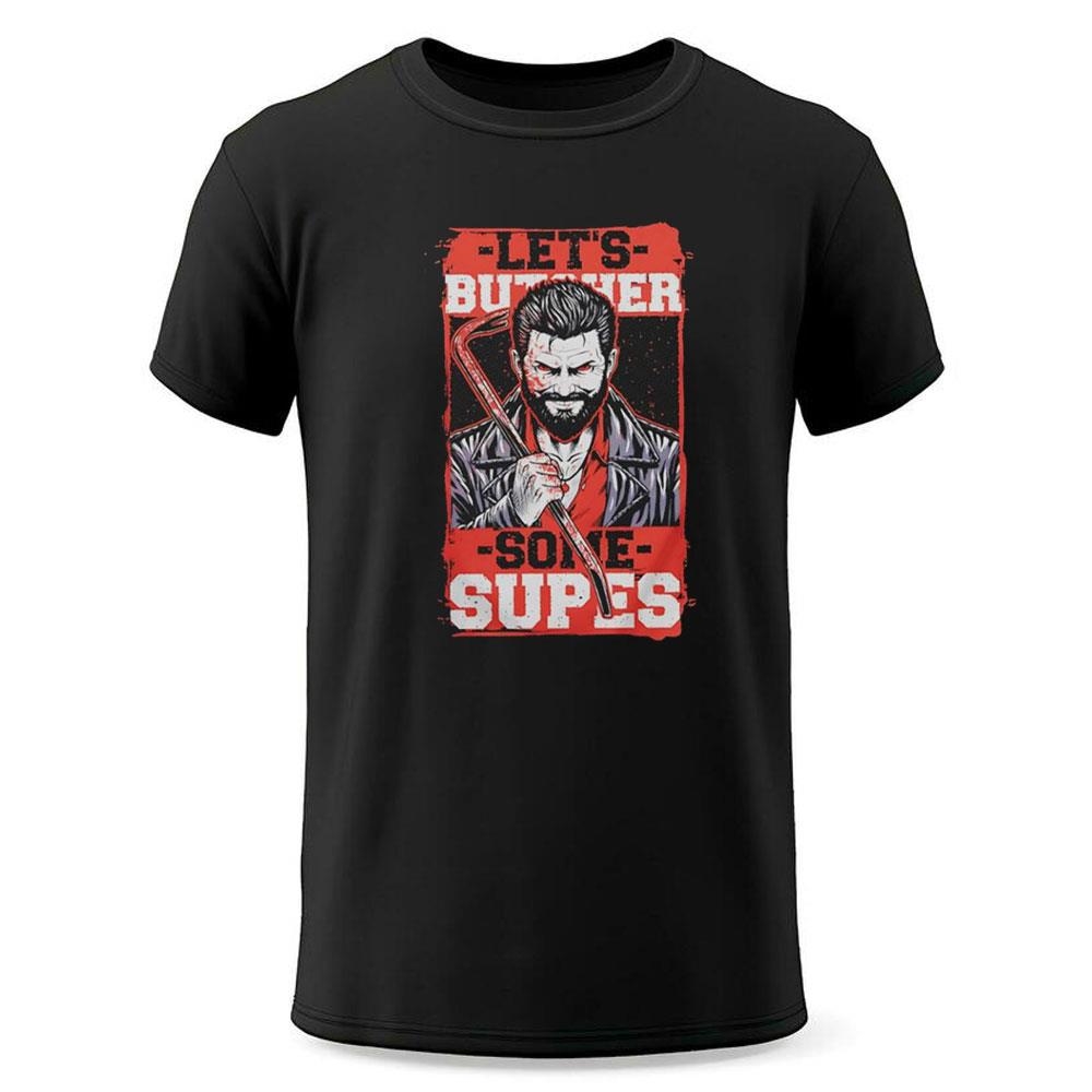 .The “Let’s Butcher Some Supes” Billy Butcher Shirt is a must-have for any fan of The Boys. As the leader of the vigilante group tasked with taking down corrupt superheroes, Billy Butcher is a complex and captivating character. This shirt captures his no-nonsense attitude and unwavering determination to bring justice to those who abuse their powers.