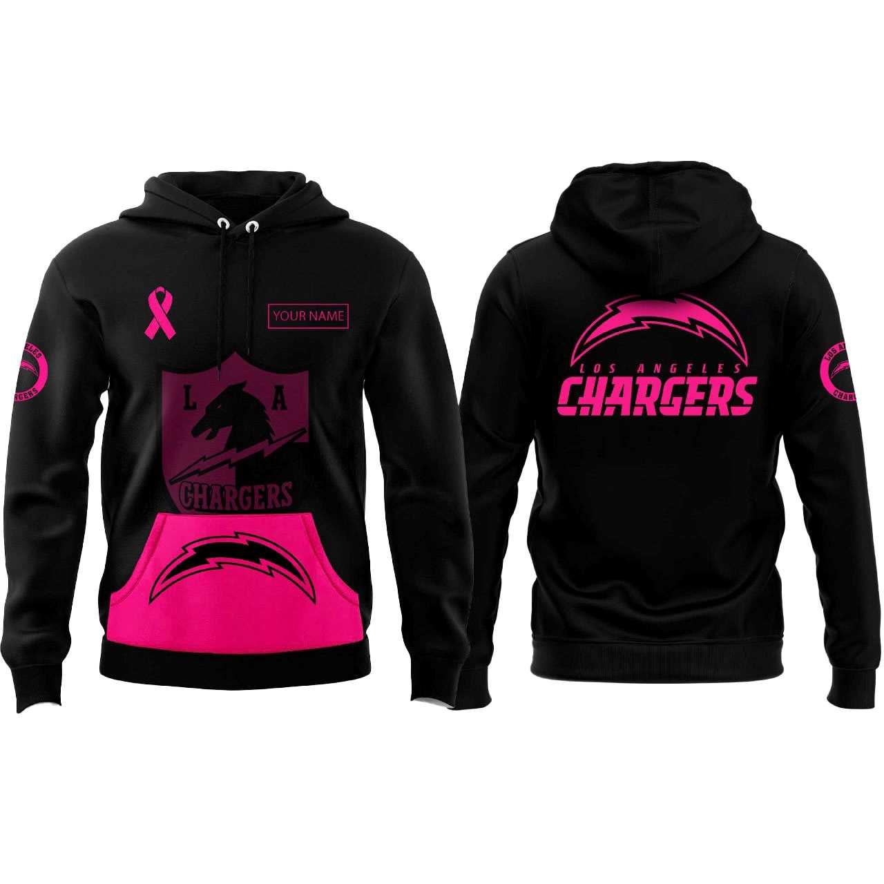 Bolt for a Cure: Purchase Your Los Angeles Chargers Breast Cancer Awareness Hoodie!. Our Los Angeles Chargers Breast Cancer Awareness Hoodie meets all of your needs: it’s warm and cozy, lightweight and roomy, and built to last. It features dropped shoulders and a standard fit to offer a high level of comfort and ease of movement.
