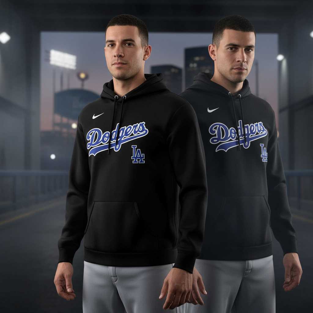 Redefine your fan style with the Los Angeles Dodgers Fashion Black Out 2026 Hoodie, a sleek and modern interpretation of LA’s baseball heritage. This “Black Out” edition features a deep charcoal black fabric that serves as a sophisticated base for the iconic “Dodgers” script, which is elegantly rendered in a tonal blue outline. The minimalist approach to the front logo is contrasted by a bold, oversized LA logo on the back, creating a striking visual impact from every angle.The hoodie is constructed with a premium tech-fleece material that offers a structured look while maintaining a soft, flexible feel. This modern fabric is designed to provide warmth without the weight, making it perfect for the unpredictable evening temperatures at Dodger Stadium. The design includes a streamlined hood and hidden side-seam pockets, keeping the aesthetic clean and focused on the high-fashion elements of the jersey-style hoodie.This piece is for the fan who wants to represent their team with a contemporary, streetwear-inspired edge. It bridges the gap between sports apparel and luxury loungewear, making it a staple for any Angeleno’s closet.Step into the new era of fan gear—purchase your Los Angeles Dodgers Fashion Black Out 2026 Hoodie now and lead the trend!