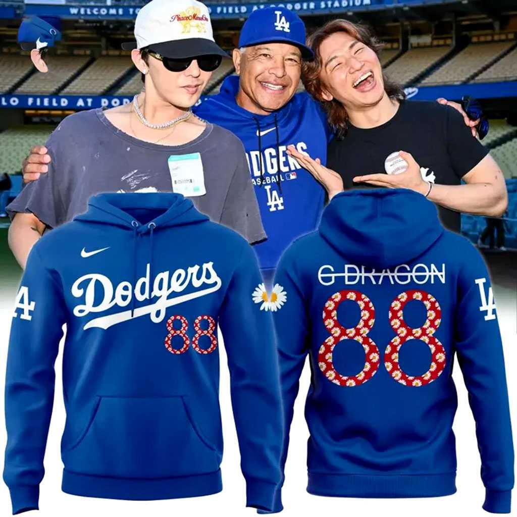 Step into the collection of a true aficionado and honor a global cultural icon with the Los Angeles Dodgers G-Dragon Special Hoodie. This design is a masterclass in modern sports and pop-culture crossover, featuring a sharp, professional-grade graphic that honors the synergy between G-Dragon’s visionary art and the Dodgers’ winning tradition. Centered on the chest is the iconic “LA” logo, while the back showcases a stylized “G-DRAGON” and #88 branding, utilizing the team’s traditional royal blue and white palette. It captures the energy, the skill, and the collective roar of a fan base that lives for the sound of the siren and the rhythm of the beat.