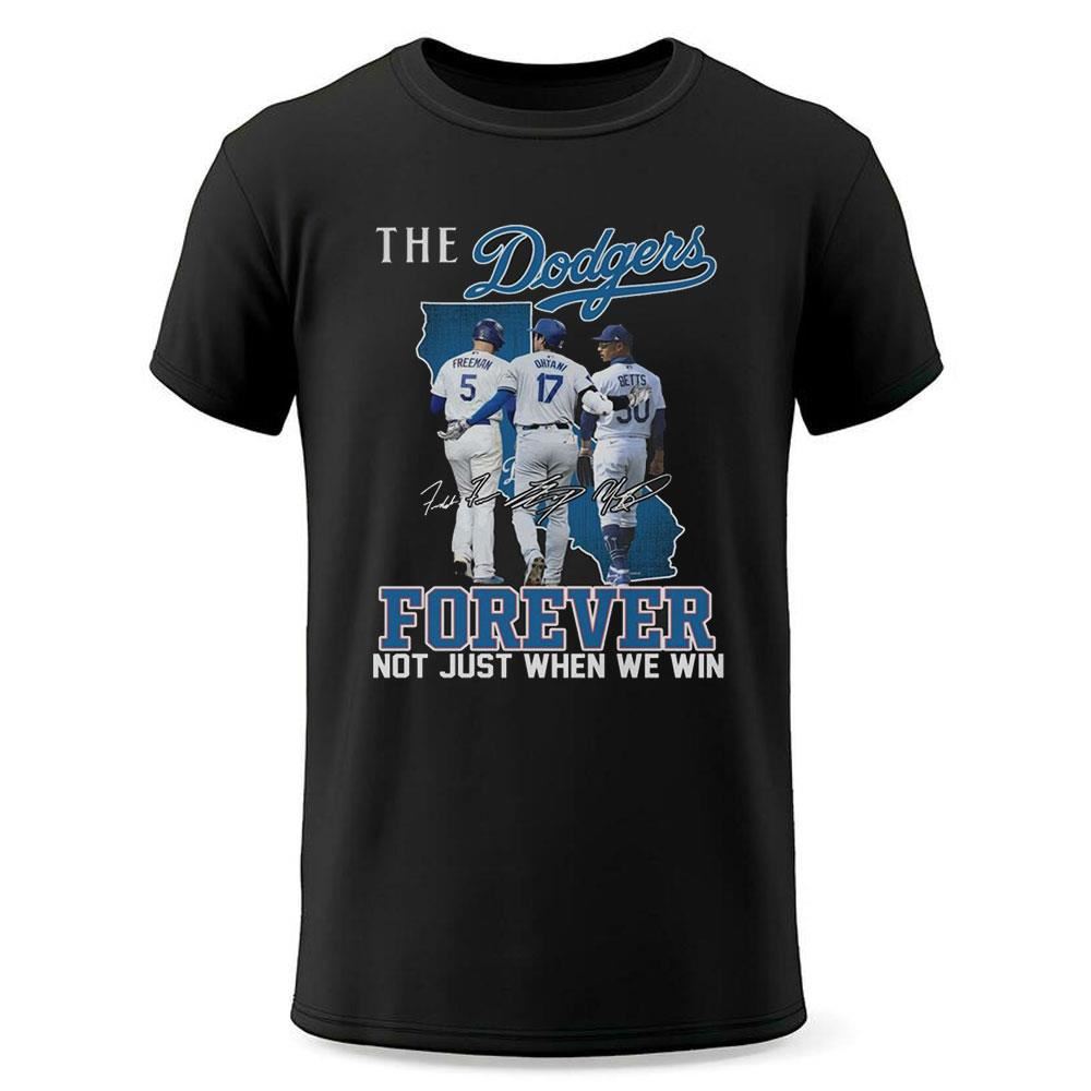 .When it comes to true fandom, the Los Angeles Dodgers embody a spirit that transcends mere victories. The “Dodgers Forever Fan Not Just When We Win” shirt is more than just apparel; it’s a statement of unwavering loyalty and passion for the team. Whether we’re celebrating a triumphant season or enduring tough losses, this shirt symbolizes the steadfast commitment of every Dodgers fan.