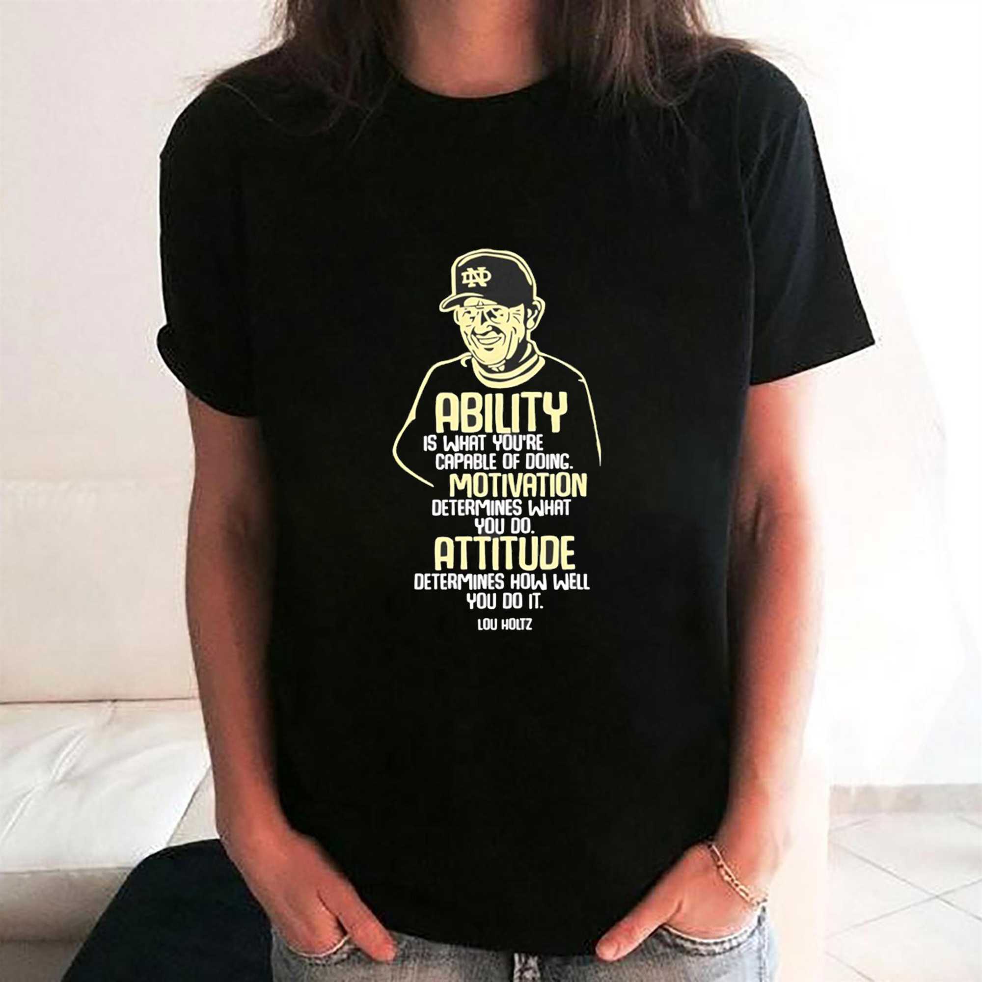 Lou Holtz Notre Dame Fighting Irish Ability Motivation Attitude Tee