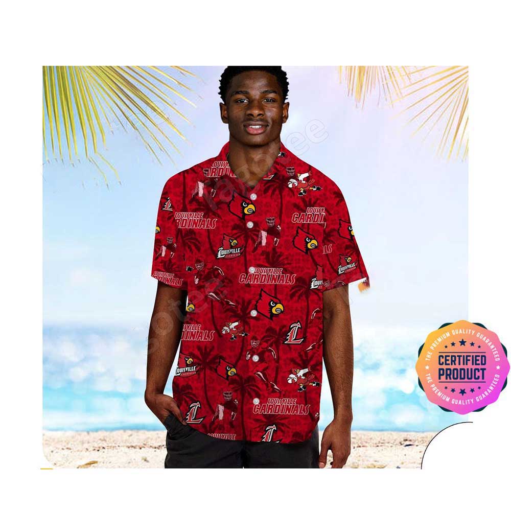 Louisville Cardinals America Flag Tropical Floral Aloha Hawaiian Shirt, Beach Shorts Custom Name For Men Women