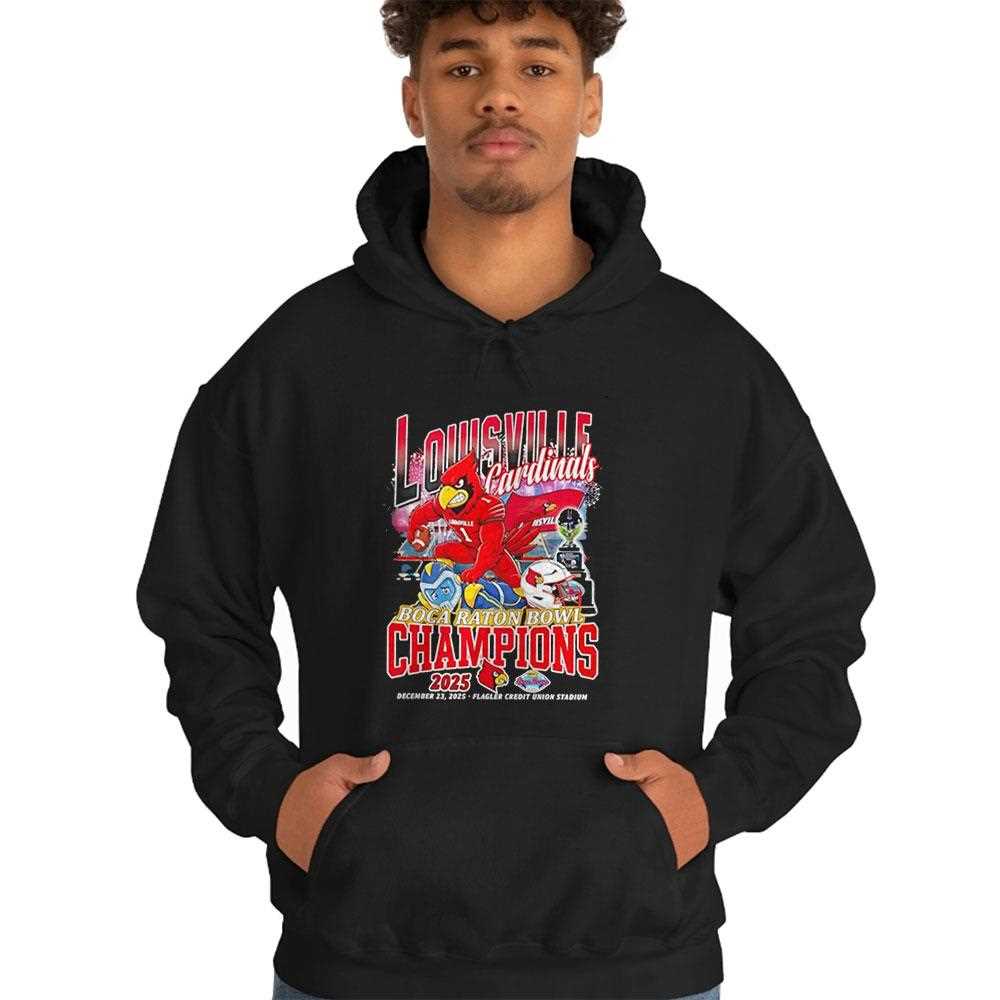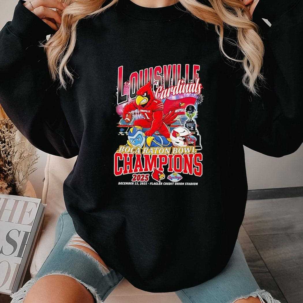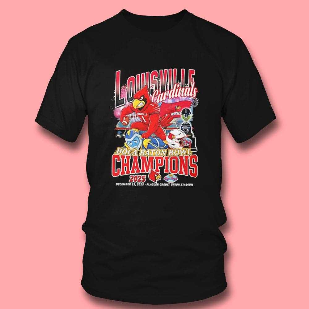 Louisville Cardinals Boca Raton Bowl Champions 2025 Mascot Tee