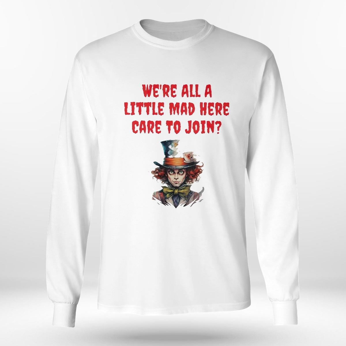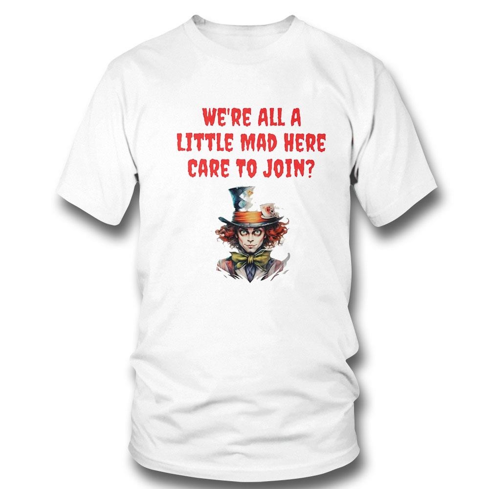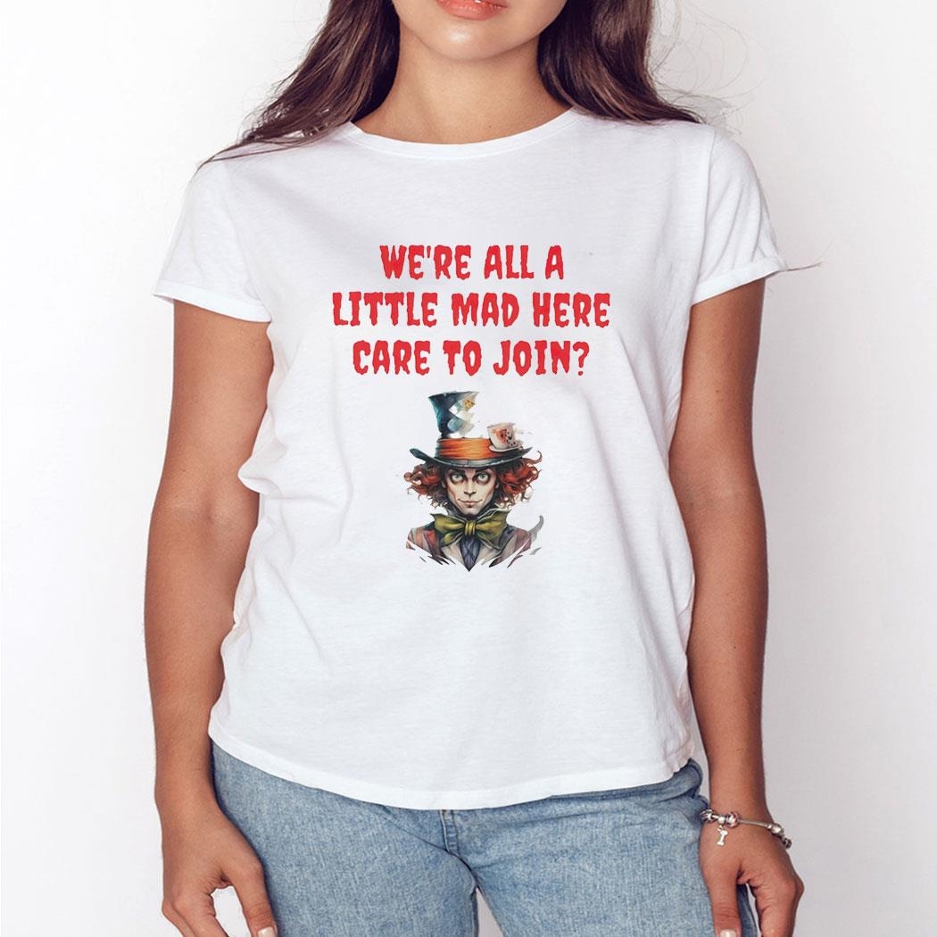 Mad Hatter We’re All A Little Mad Here Care To Join Shirt Hoodie Ladies Tee