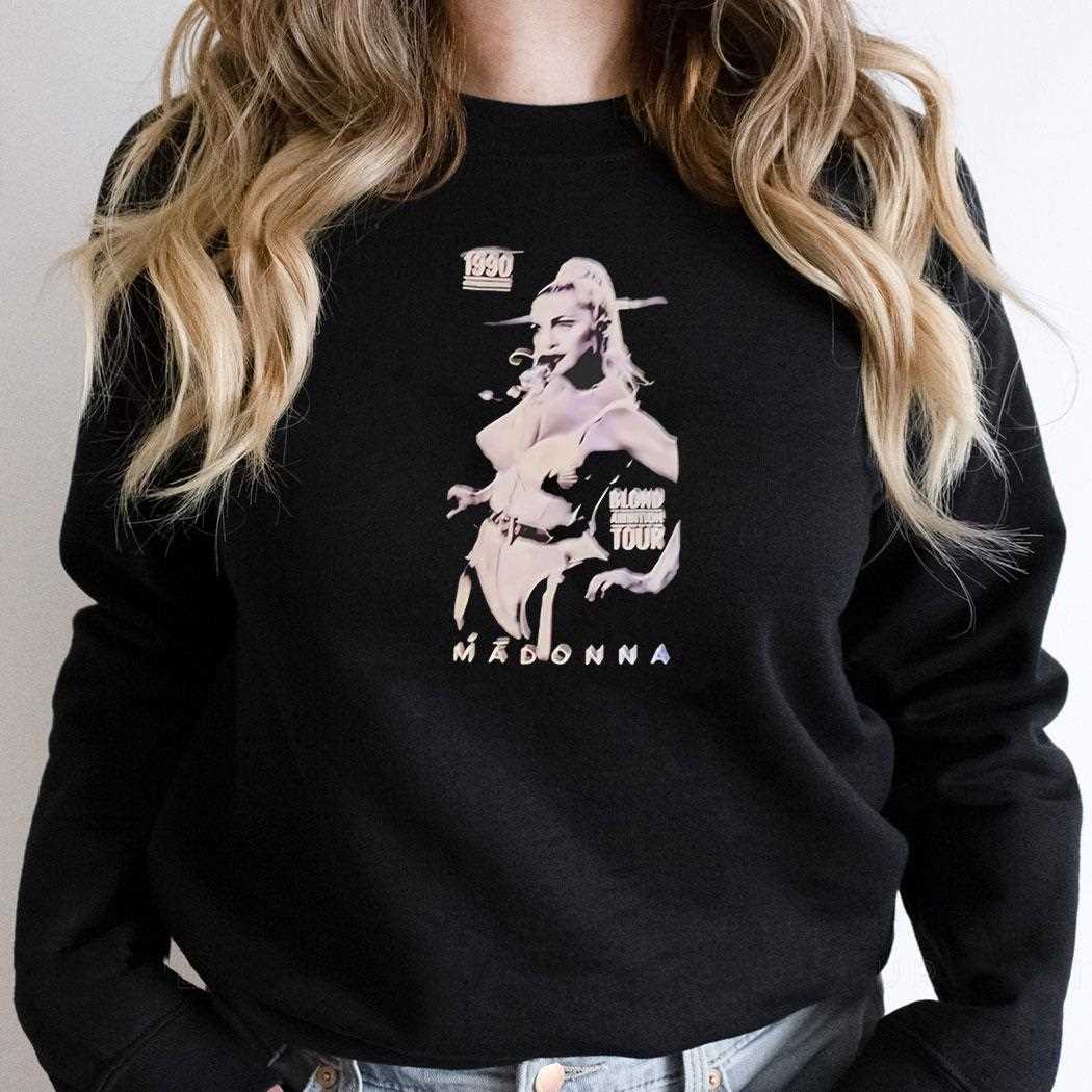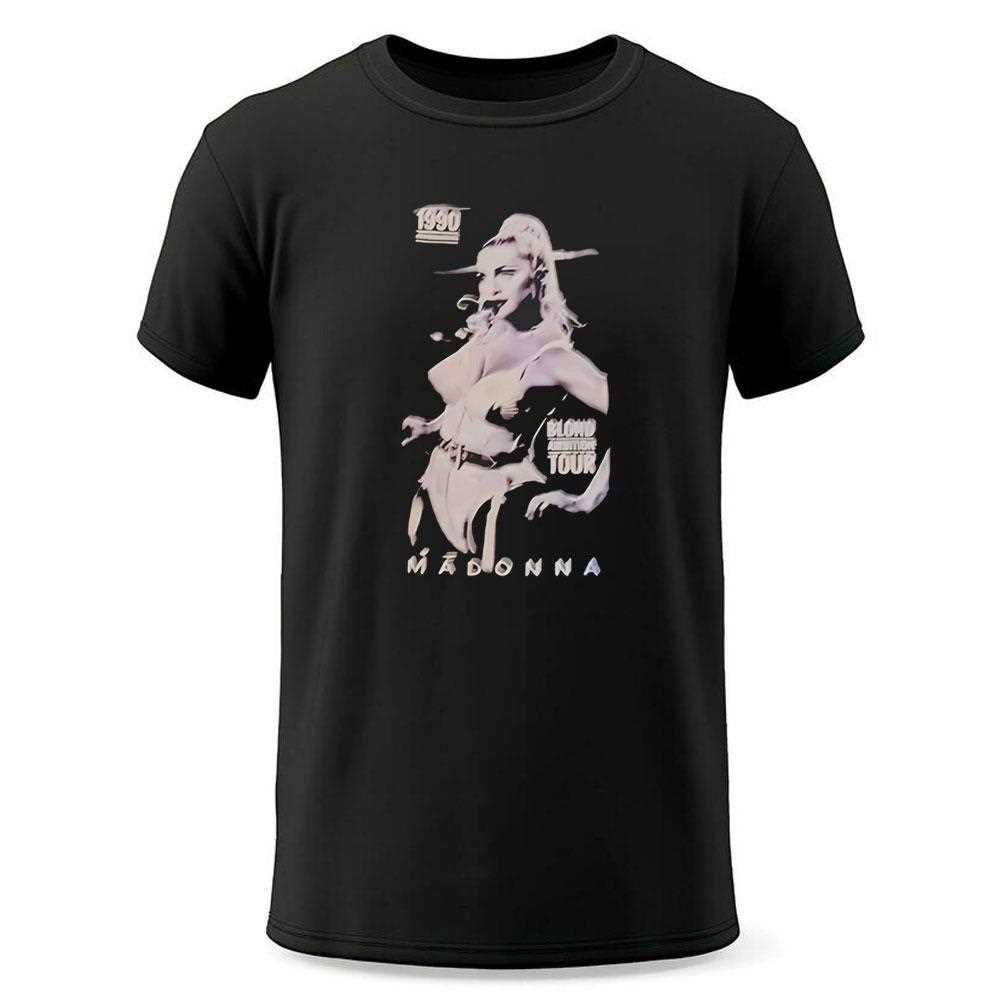 Pay homage to the Queen of Pop with this sophisticated Blond Ambition Tour 1990 tribute. The design features a stunning, high-contrast monochrome portrait of Madonna in her most iconic stage persona, capturing the power and glamour of the tour that changed music history. The minimalist layout and elegant typography give the shirt a high-fashion, boutique feel that transcends typical concert merch. Crafted from a premium, soft-wash cotton fabric, this tee offers a luxurious feel and a tailored, modern fit. It is a timeless piece for fans who appreciate artistic depth and the cultural impact of a legend. The high-definition screen print ensures every line of the iconic silhouette remains sharp and vivid. Stand out with a look that celebrates the ultimate icon of style and performance. Celebrate pop royalty and elevate your style—buy the Madonna Blond Ambition Tour 1990 Tee today!. T-shirt !