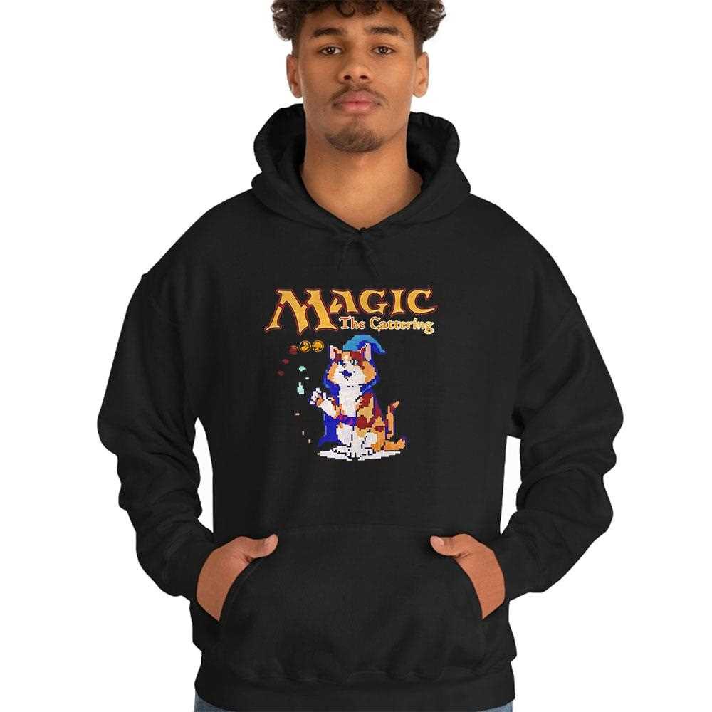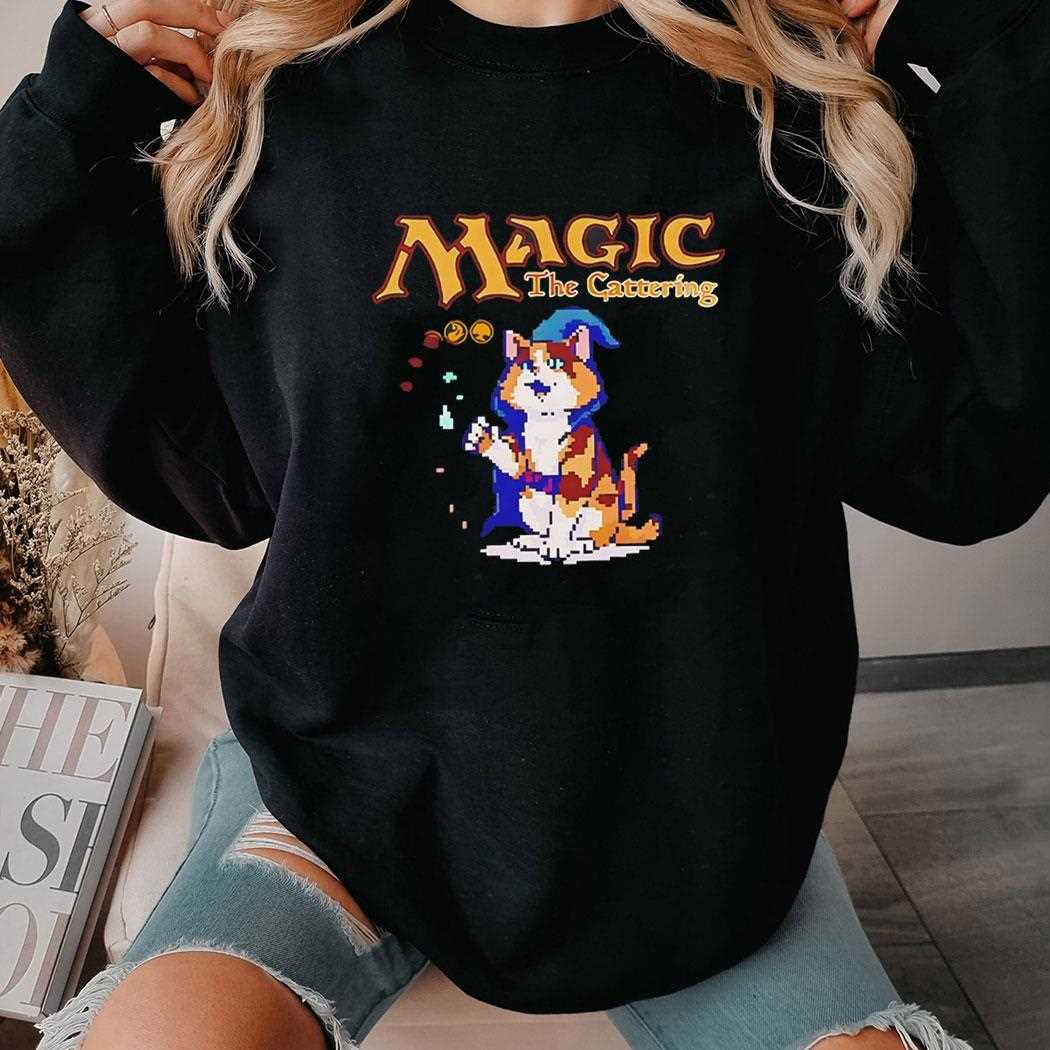 Level up your wardrobe with a touch of whimsical gaming humor! This “Magic The Cattering” tee is a clever parody of the world-famous TCG, featuring a high-definition illustration of a majestic, “legendary” cat ready for battle. The artwork masterfully replicates the aesthetic of a classic MTG card, complete with mana symbols and flavor text that will delight both cat lovers and tabletop gamers. Printed on a premium, soft-touch cotton base, the vibrant reds and blues of the graphic are sharp and detailed. This shirt is an absolute favorite for game nights, comic-cons, or casual weekend hangouts where you want to showcase your hobby with a smile. The fabric is pre-shrunk and exceptionally breathable, ensuring comfort through even the longest draft sessions. It’s a unique and fun way to represent the “Magic” community while celebrating the dominance of our feline overlords. Tap into some style and summon the cute—get your Magic The Cattering Magic The Gathering Tee right now!. T-shirt !