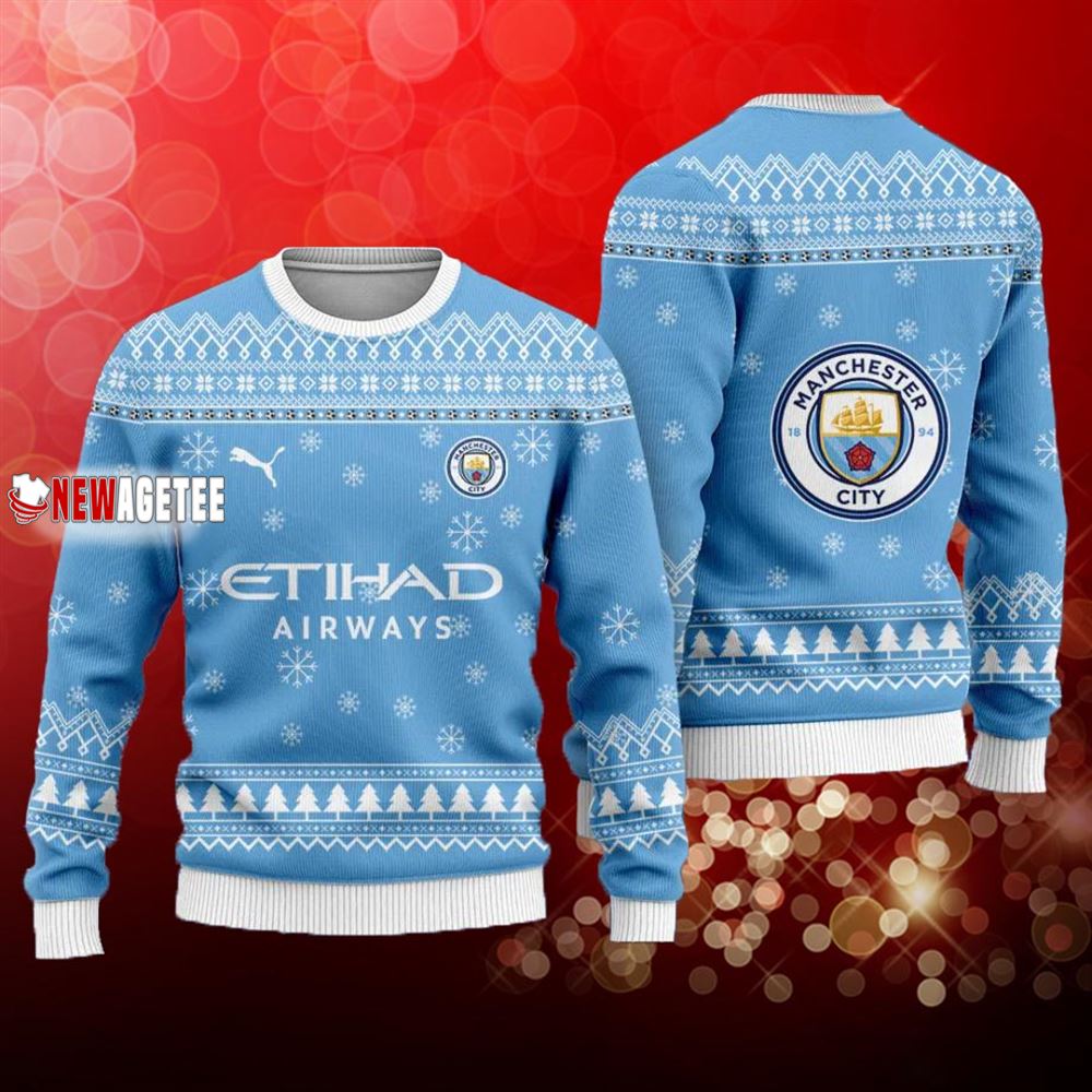 Don’t miss out on the opportunity to stand out from the crowd this holiday season. Grab your Manchester City FC Christmas Ugly Sweater today and let everyone know who you support, both on and off the pitch. It’s time to celebrate in true Blue fashion!. The Manchester City Fc Christmas Ugly Sweater are made from a high quality wool fabric that allows the sweater to breath and regulate your body’s temperature. This active fibre is designed to react to your body’s temperature, keeping you warm in the winter and cool in the summer.