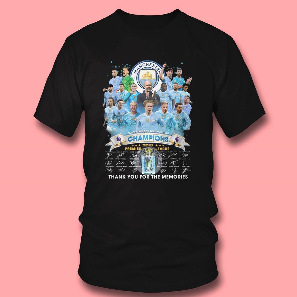Manchester City Football Club’s 2023-2024 Premier League Championship is a testament to their unwavering dedication, strategic brilliance, and sheer talent on the pitch. As the team celebrates this historic achievement, the “Thank You For The Memories” tee is the perfect way to commemorate this remarkable season.