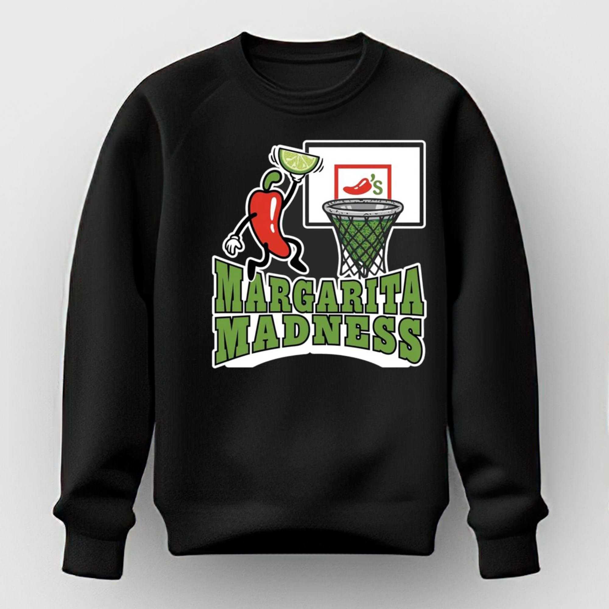 Get ready for the ultimate game day with our Margarita Madness 2026 Shirt! This design brilliantly captures the spirit of celebration, featuring a lively, cartoonish red chili pepper character with arms and legs, donning white gloves, dynamically leaping towards a basketball hoop. Instead of a ball, our spicy friend is about to “dunk” a vibrant green lime wedge, perfectly echoing the theme. The basketball backboard proudly displays the iconic red chili logo with an apostrophe ‘s’, while the net itself is a textured green, cleverly designed to resemble a zesty lime. Below this hilarious scene, bold, stacked green lettering with a crisp white outline declares “MARGARITA MADNESS,” playfully parodying collegiate basketball tournaments with a delicious, boozy twist. It’s the perfect blend of sports enthusiasm and cocktail culture, making it an instant conversation starter for any fan of fun and flavor.