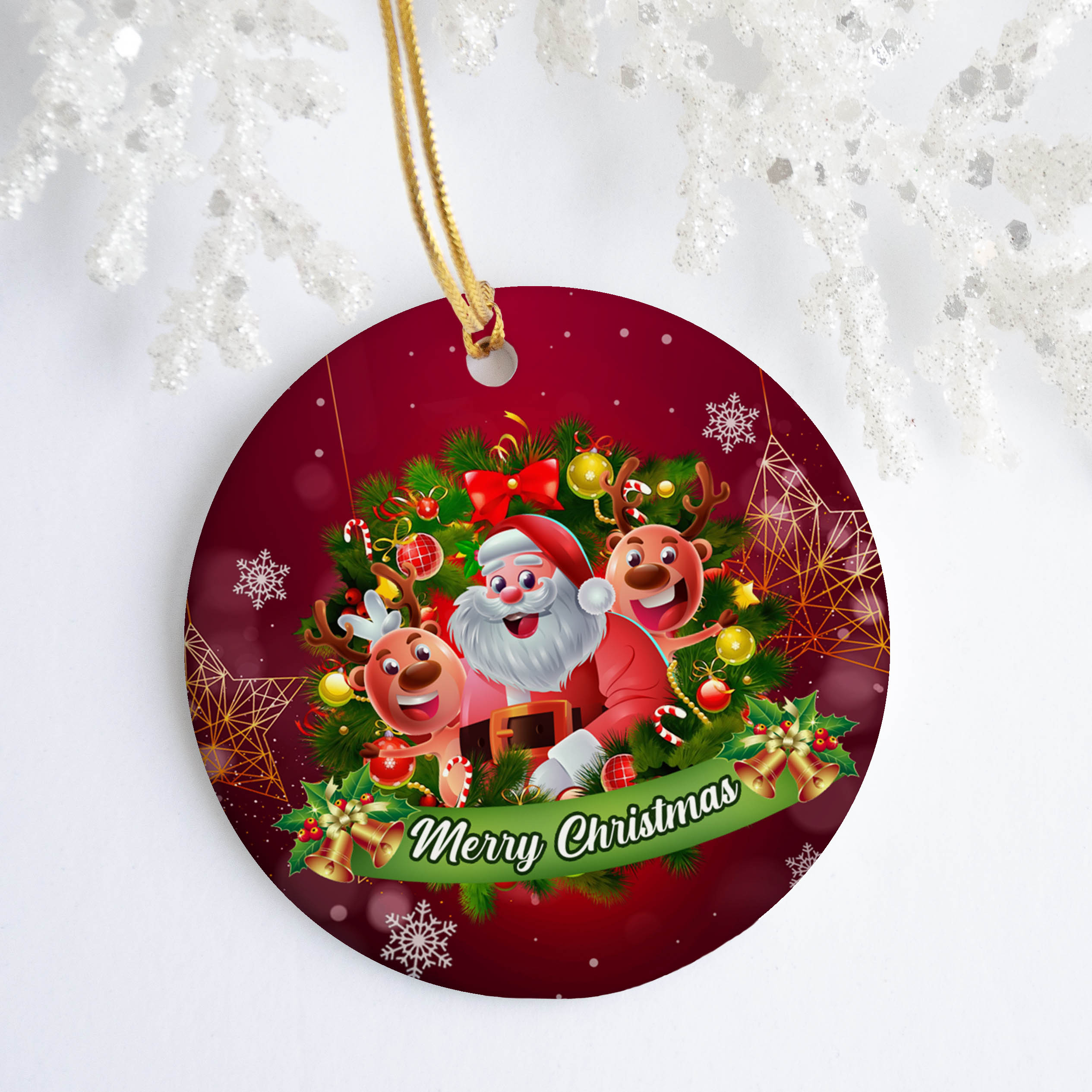 Merry Christmas Cute Cartoon Santa Claus Reindeer Circle Ornament Keepsake – Funny Christmas Gifts White Circle Ornament