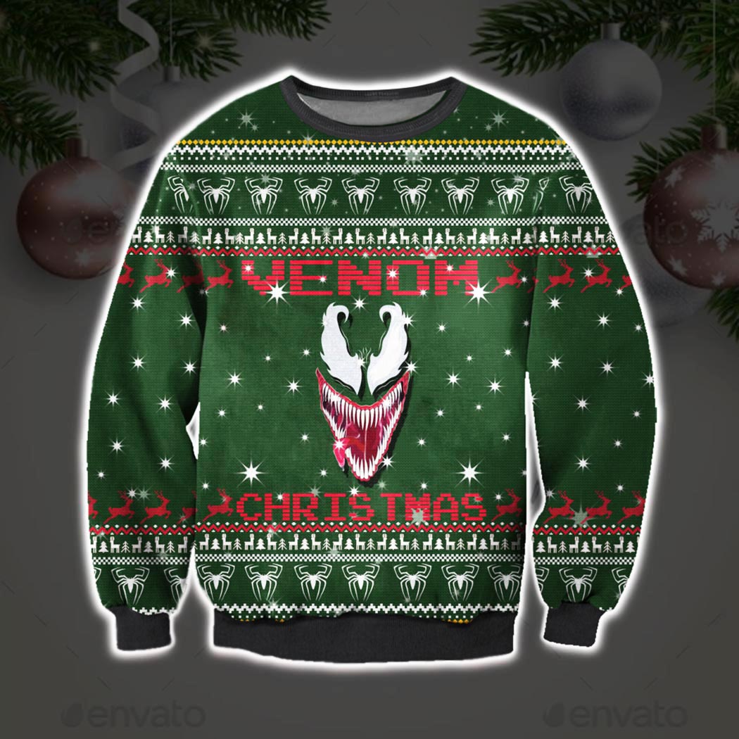 Merry Christmas Venom Ugly Christmas Knit Sweater, 3D Printed Unisex Sweater, Hoodie, Kid Sweater