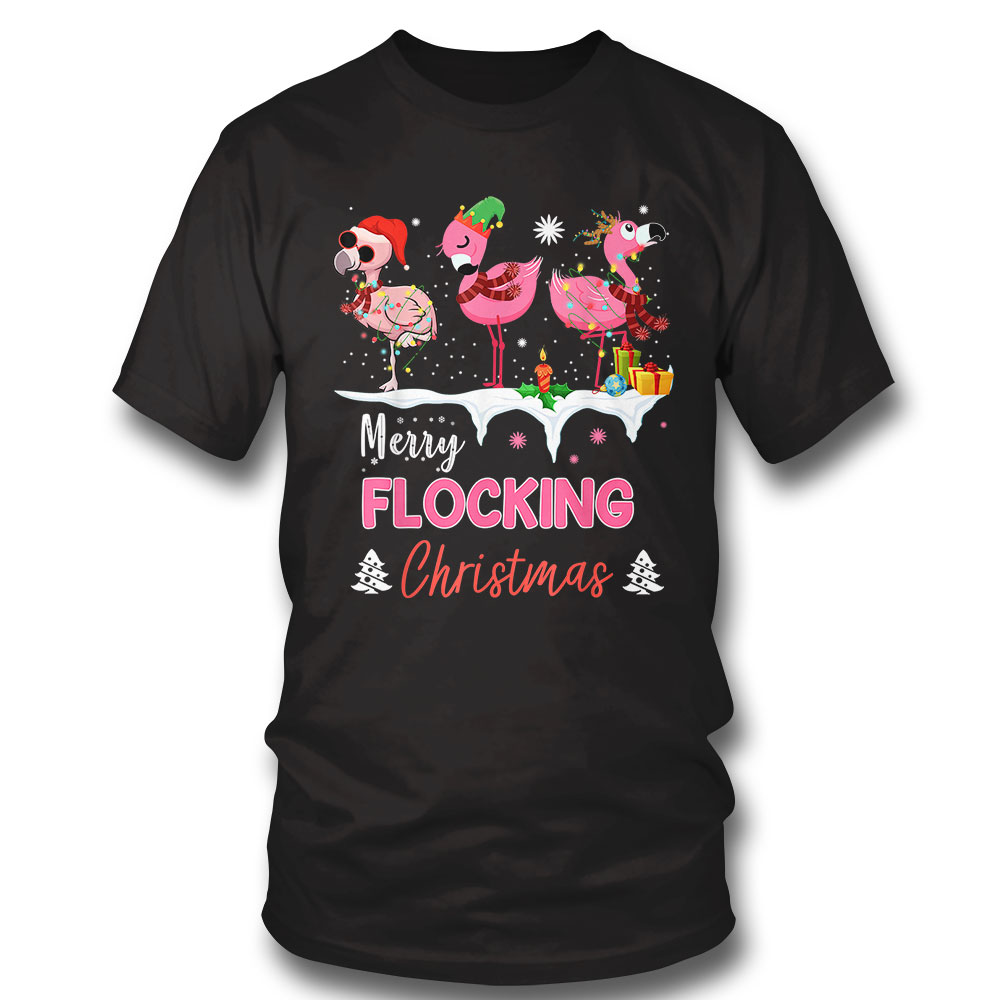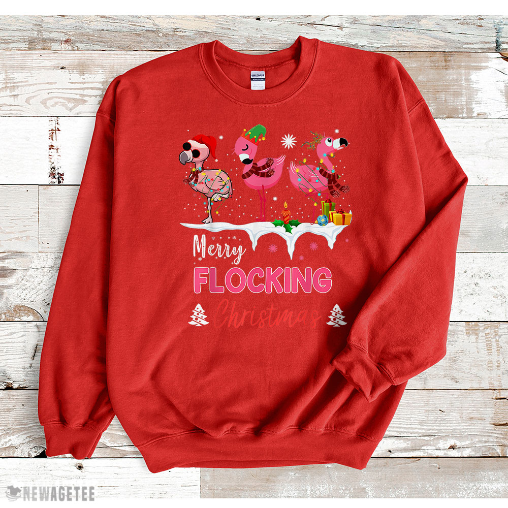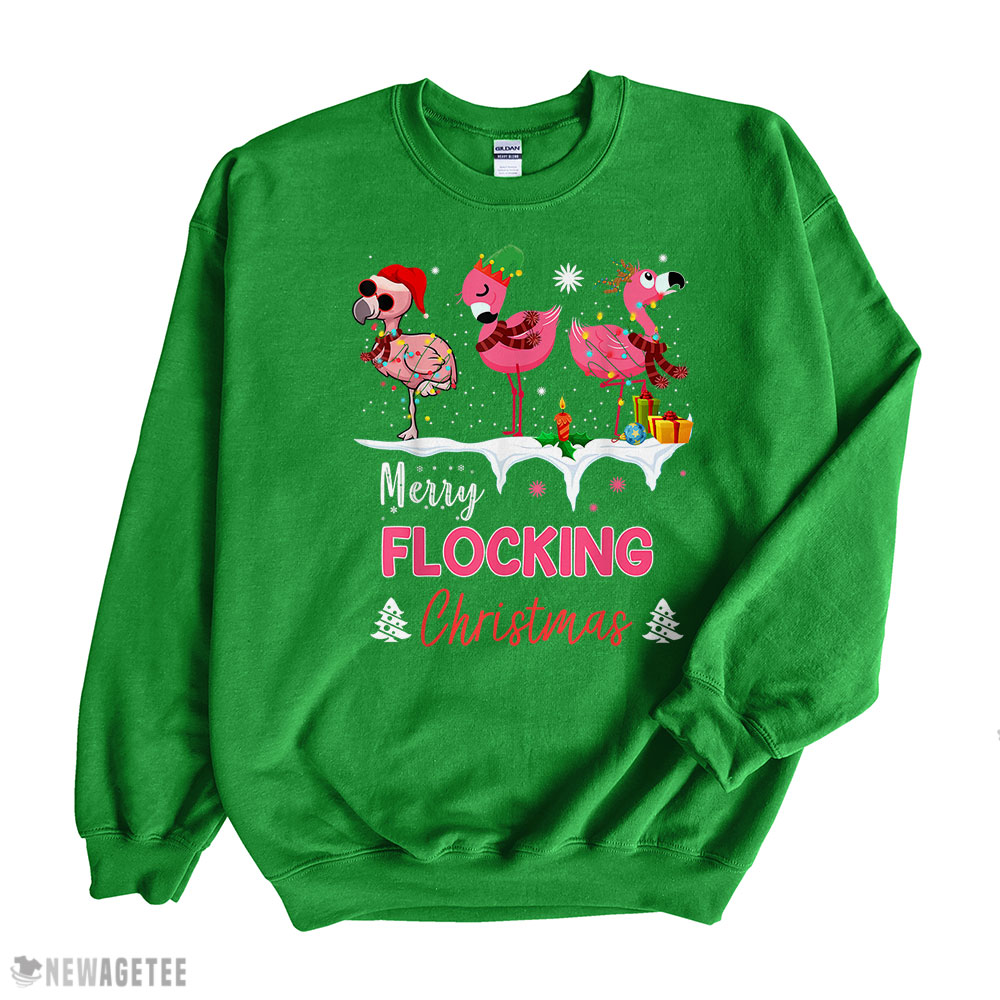 Merry Flocking Christmas Three Flamingo Pink In Santa Hat Sweatshirt