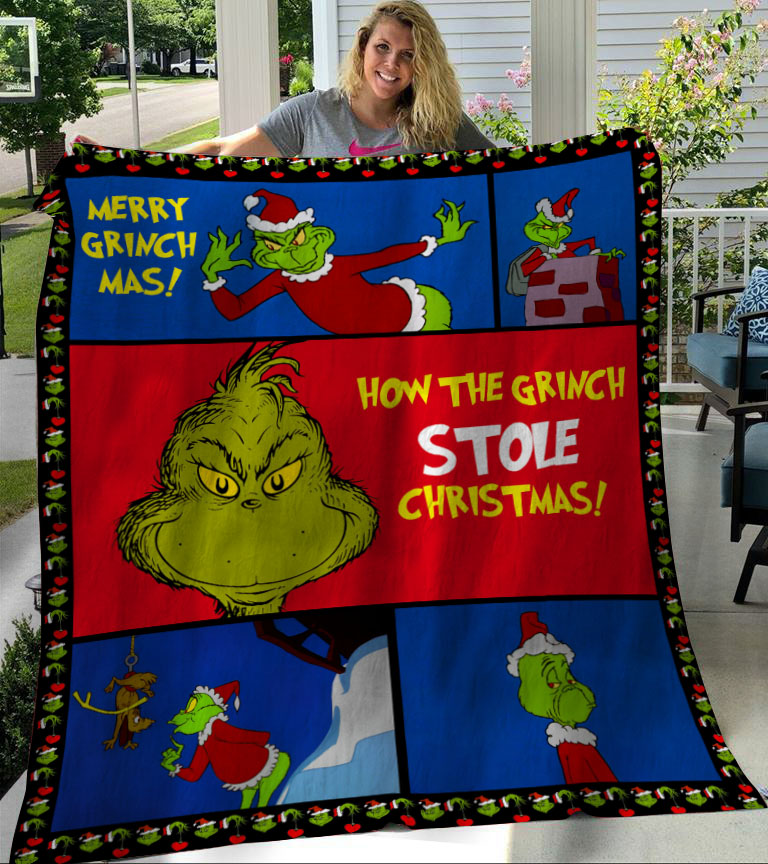Merry Grinchmas How the Grinch Stole Christmas Fleece Blanket, Sherpa Blanket