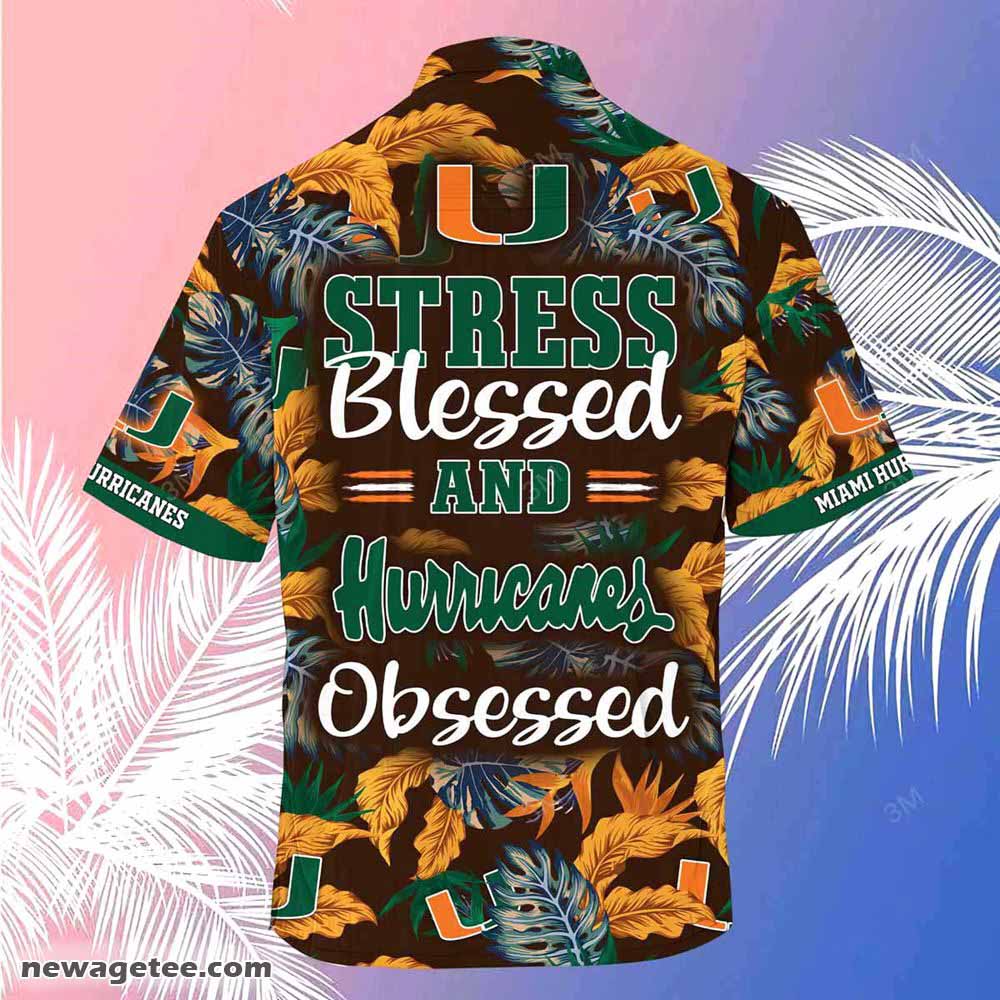 Miami Hurricanes Summer Beach Hawaiian Shirt Stress Blessed Obsessed