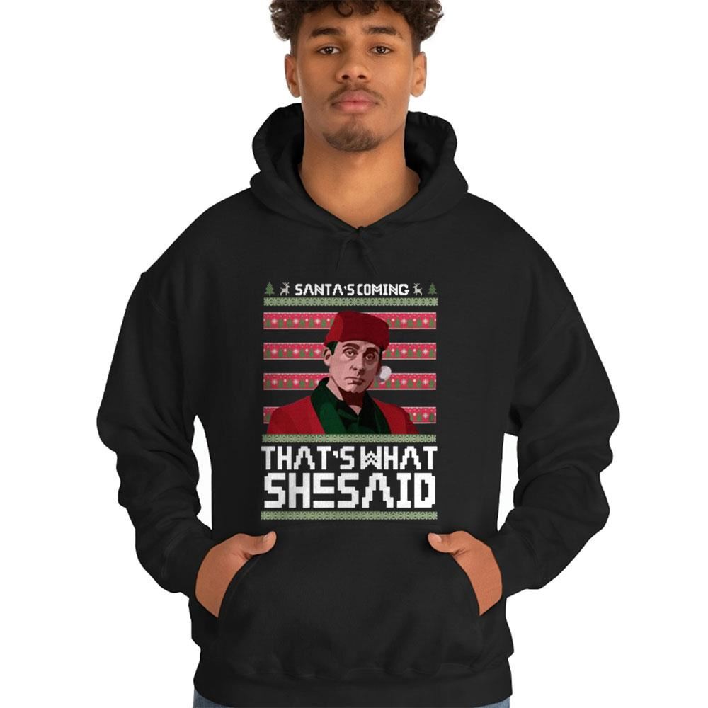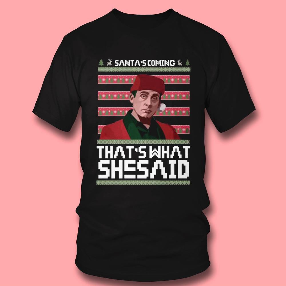 Michael Scott Santas Coming Thats What She Said Ugly Christmas Shirt