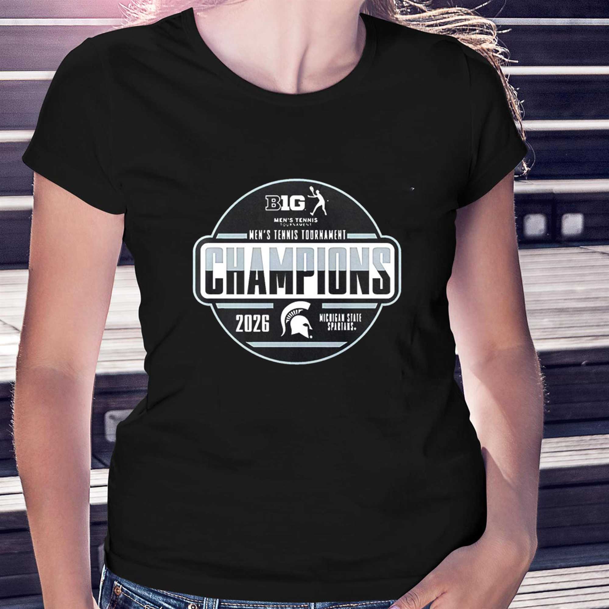 Premium quality Michigan State Spartans 2026 Big Ten Mens Tennis Tournament Champions Locker Room Shirt design. 100% cotton, machine washable.