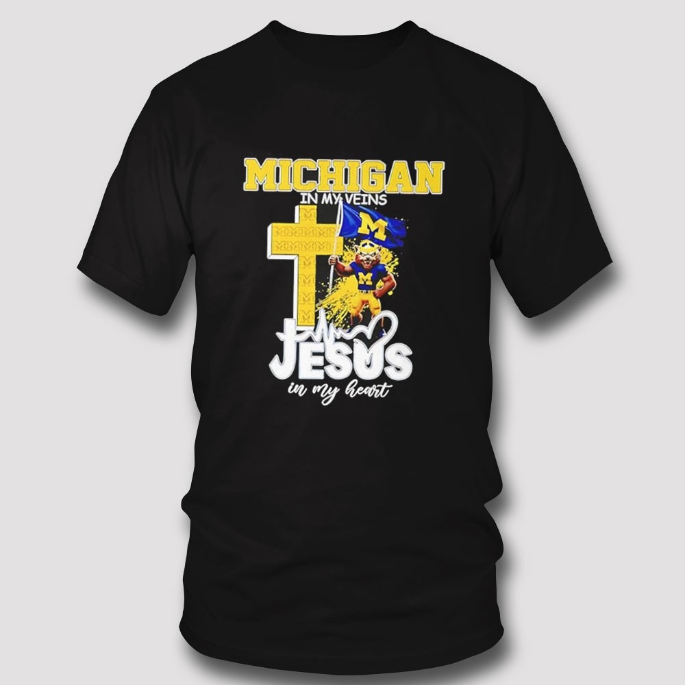 Michigan Wolverines Football In My Veins Jesus In My Heart Tee