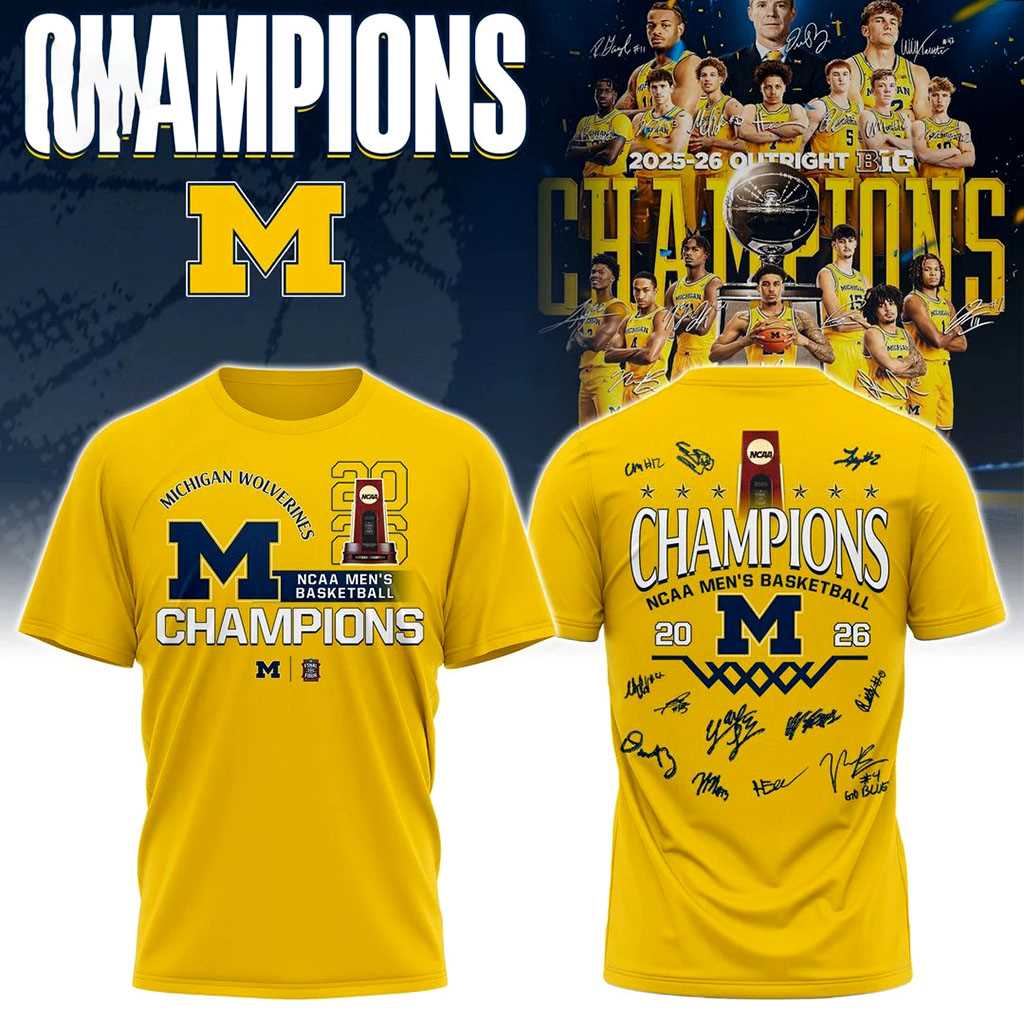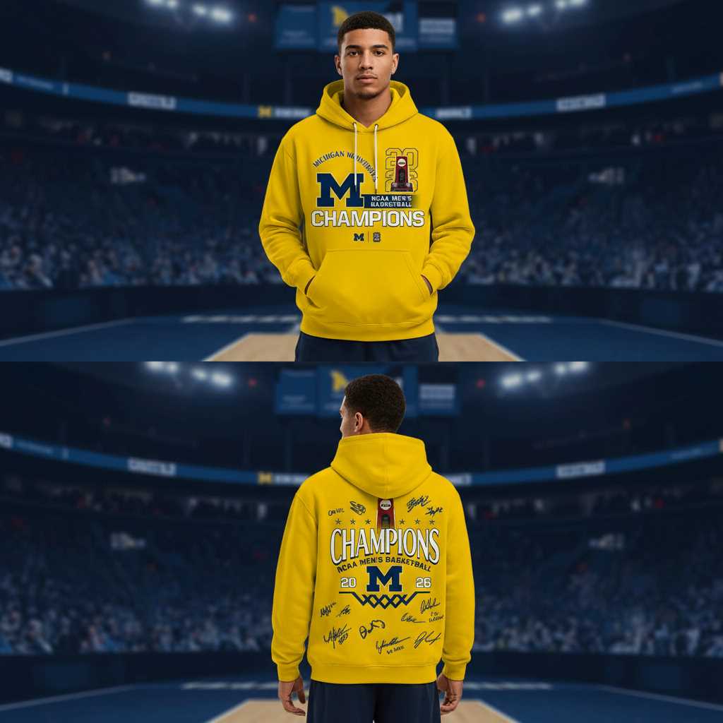Crafted for superior comfort and lasting quality, this Michigan Wolverines NCAA Basketball Champions 2026 Hoodie features a luxurious fur-lined soft fuzzy premium polyester blend, ensuring warmth and coziness. The fabric offers a 4-way stretch, providing a soft and luxurious feel that moves with you, perfect for game days or everyday wear. The vibrant yellow design showcases bold Michigan Wolverines branding on the front, with “CHAMPIONS NCAA MEN’S BASKETBALL 20 M 26” and multiple player signatures on the back, capturing the spirit of a historic win.