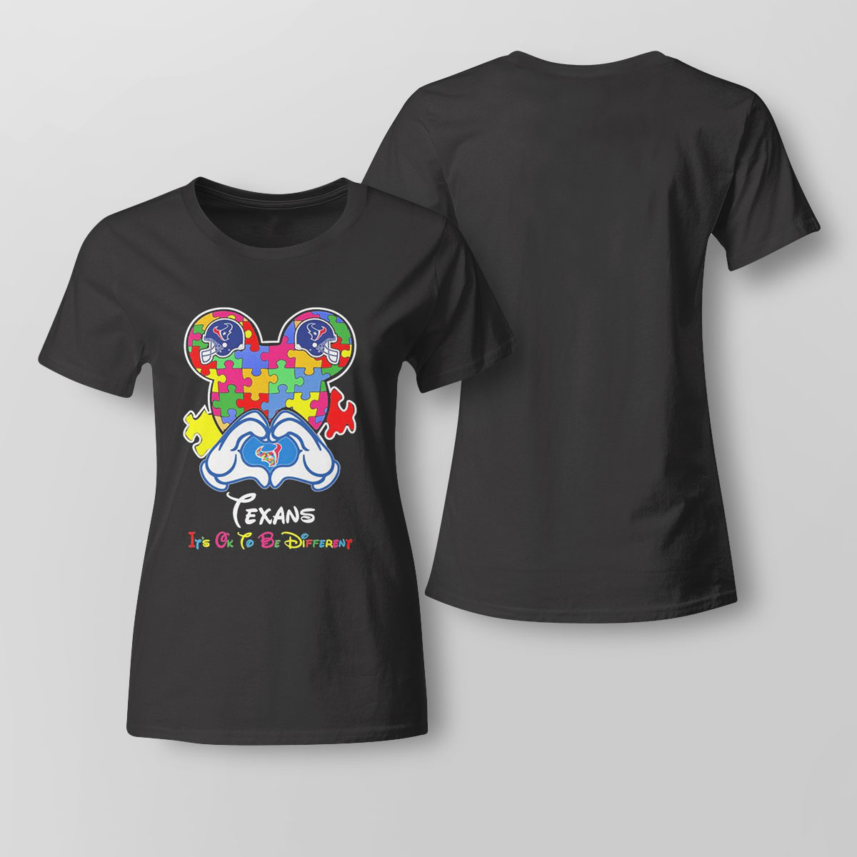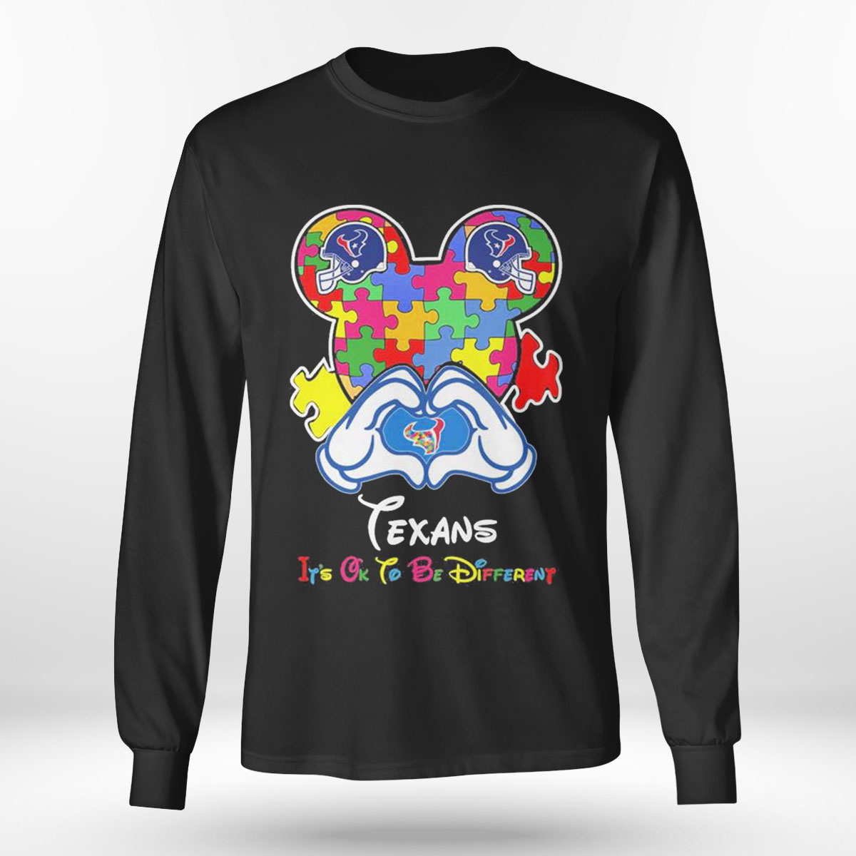If you’re searching for a Mickey Mouse Love Houston Texans Autism Its Ok To Be Different T-shirt that can offer both a soft feel and breathability to keep you comfortable on sweltering summer days, look no further. Show your love for Mickey Mouse, the Houston Texans, and support for autism awareness with this unique t-shirt. Featuring the iconic Disney character and the Texans logo, this shirt also includes the powerful message “It’s Ok To Be Different” to promote inclusivity and acceptance. Made with high-quality materials, this t-shirt is comfortable and durable, perfect for wearing to games or everyday wear. Join the movement and make a statement with this Mickey Mouse Love Houston Texans Autism It’s Ok To Be Different T-Shirt. Order yours today!. Our 100% cotton T-shirt is the answer to your wardrobe woes. Made from soft, breathable cotton, it will keep you comfortable and chic throughout the season. Not only is it easy to wear, but it’s also easy to care for – simply toss it in the washing machine and dry it on low heat, and it will look brand new. It’s also an excellent option for those with sensitive skin, thanks to its natural hypoallergenic properties. You don’t have to take our word for it – give it a try and see for yourself! Purchase your cotton T-shirt today and add a touch of comfort and style to your casual or dressed-up looks. Don’t wait any longer, add it to your cart and experience the benefits of our 100% cotton T-shirt !